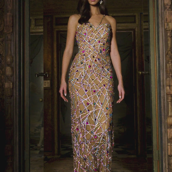 Ashely Lauren 11512 Long Prom Dress Corset Fully Beaded Sweetheart Neckline Spaghetti Strap Formal Pageant Gown