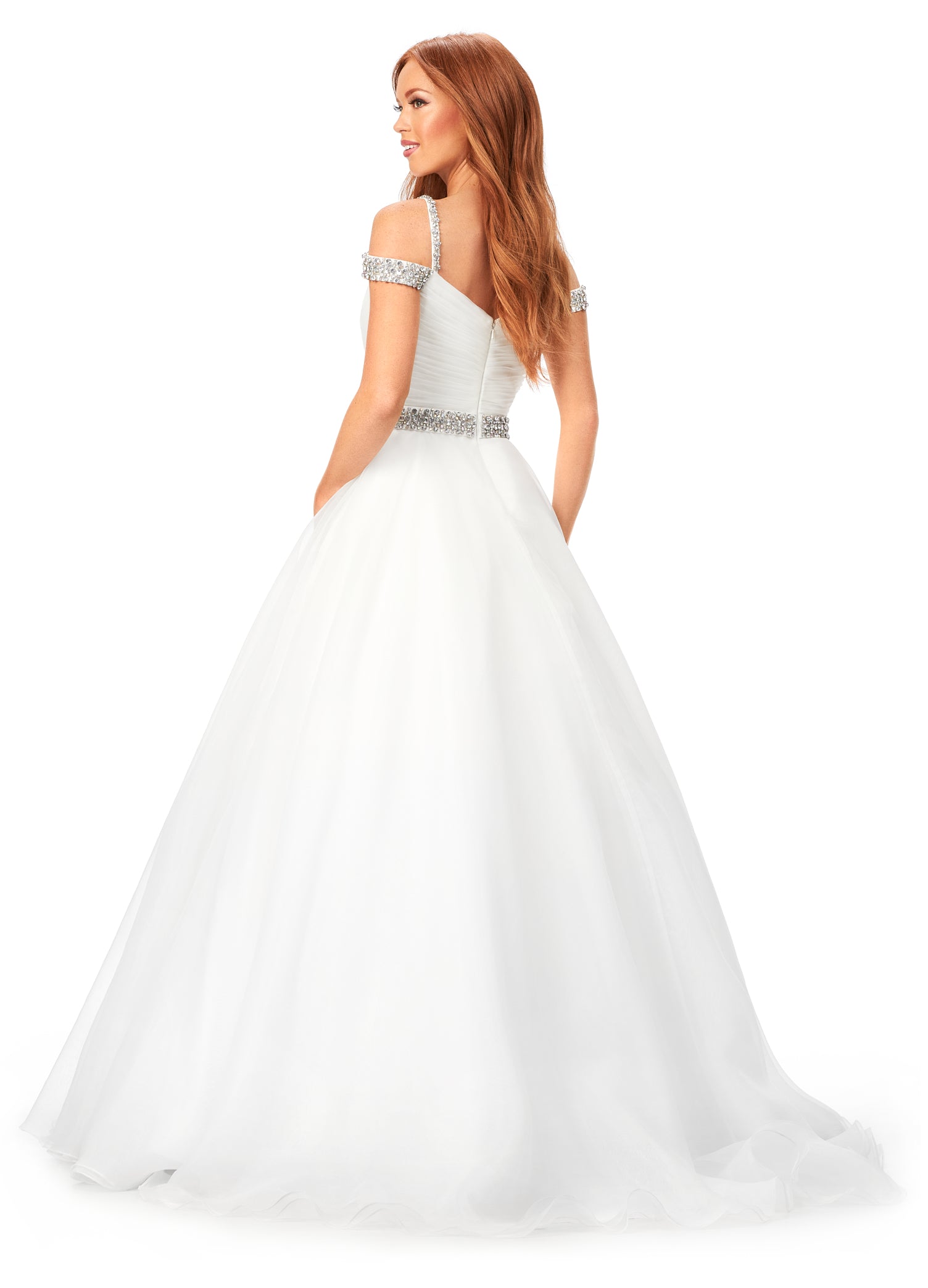 Ashley Lauren 11221 Off Shoulder Organza Ball Gown with Beaded Straps
