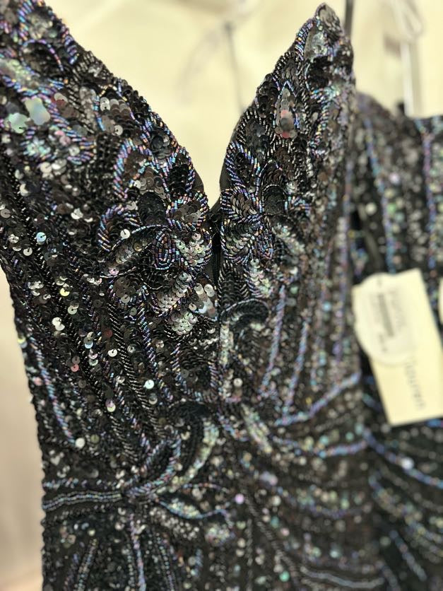 Ashley Lauren 11236 Black/Silver Prom Dress Size 4,8,12,14,16 Long Fitted V Neck Slit Beaded Sequin Evening Pageant Gown
