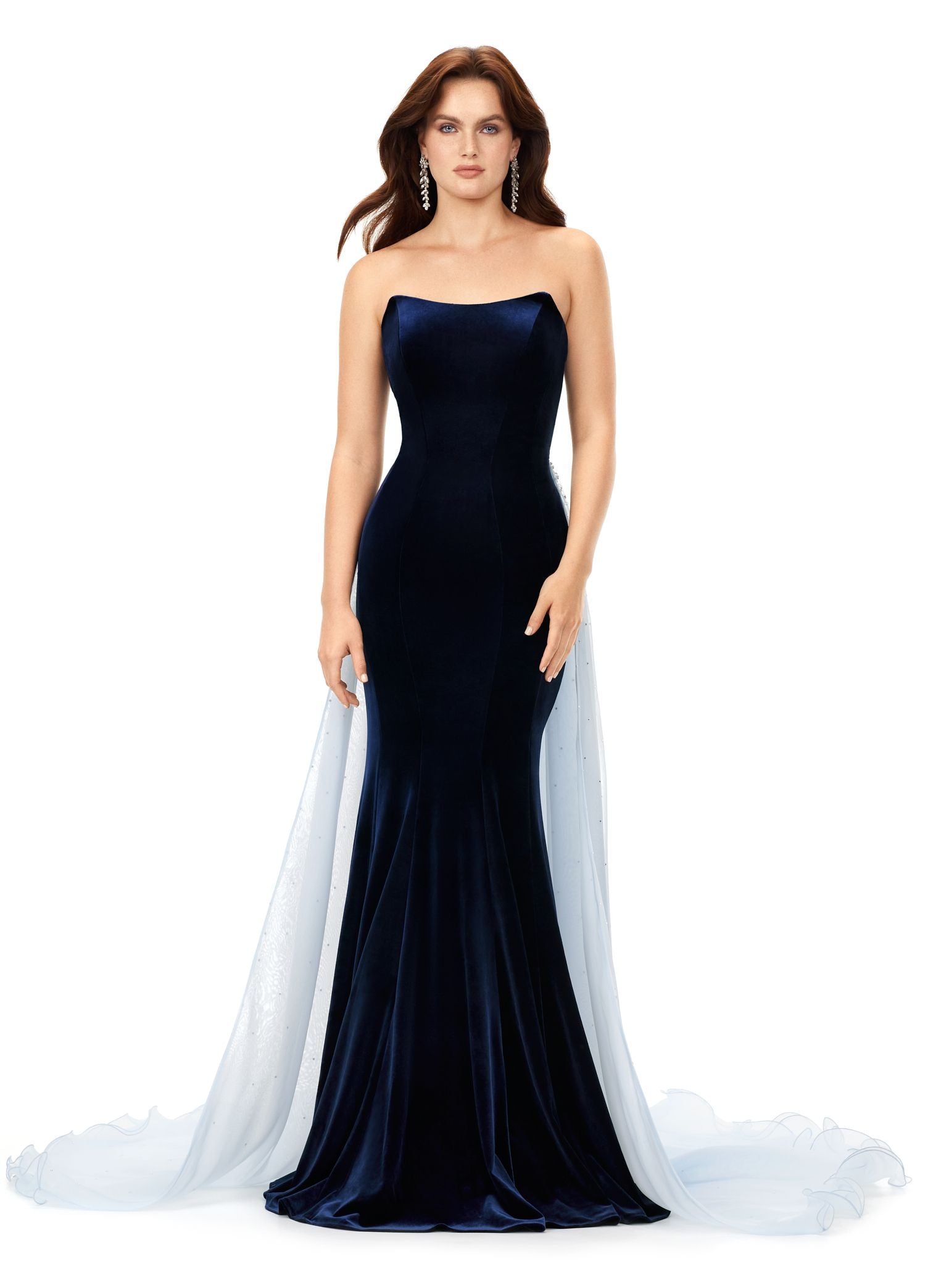 Ashley Lauren 11311 Long Prom Dress Strapless Velvet Evening Gown with Organza Overskirt Formal Pageant