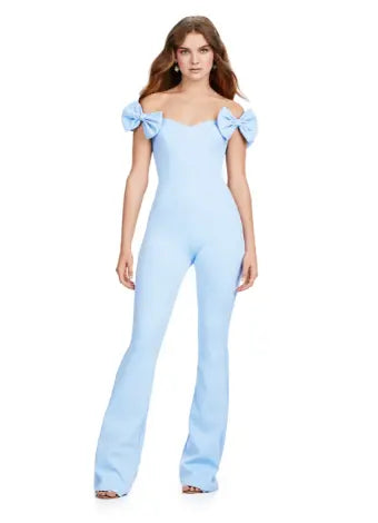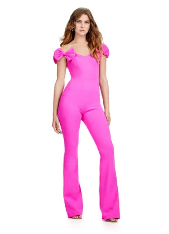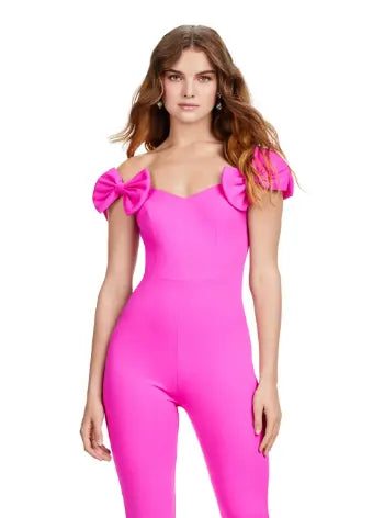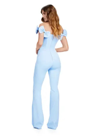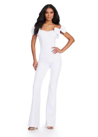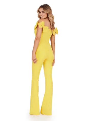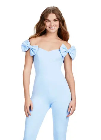Ashley Lauren 11439 Formal Scuba Jumpsuit Off Shoulder Bow Details Prom