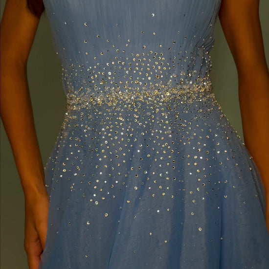 Expertly crafted by Ashley Lauren, this 11597 Long Prom Dress exudes timeless elegance. The strapless design coupled with glittery tulle creates a stunning ball gown silhouette. Adorned with a beautiful beaded belt, this formal pageant gown is a perfect choice for any special occasion. The perfect dress fit for a princess. This strapless glitter tulle ball gown features a beaded waist detail that'll be sure to make you sparkle at your next event!