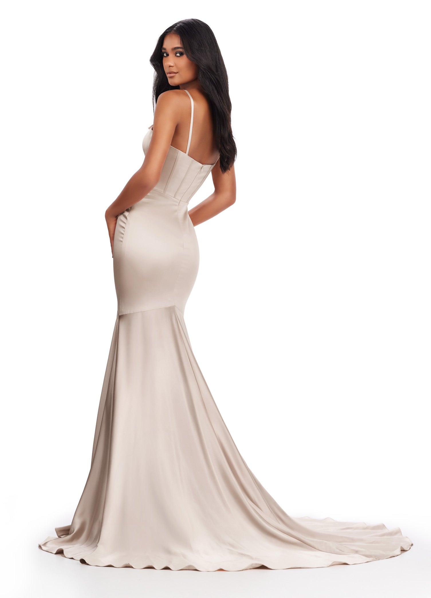 Achieve a stunning look in the Ashley Lauren 11644 Long Prom Dress. With a mermaid silhouette, corset bodice, and spaghetti straps, this formal gown is both flattering and elegant. Adorned with intricate beaded details, it's the perfect choice for prom or pageants. Make a statement and turn heads with this exquisite dress. Classy and timeless! This satin spaghetti strap gown features a corset bustier and beaded details on the straps.