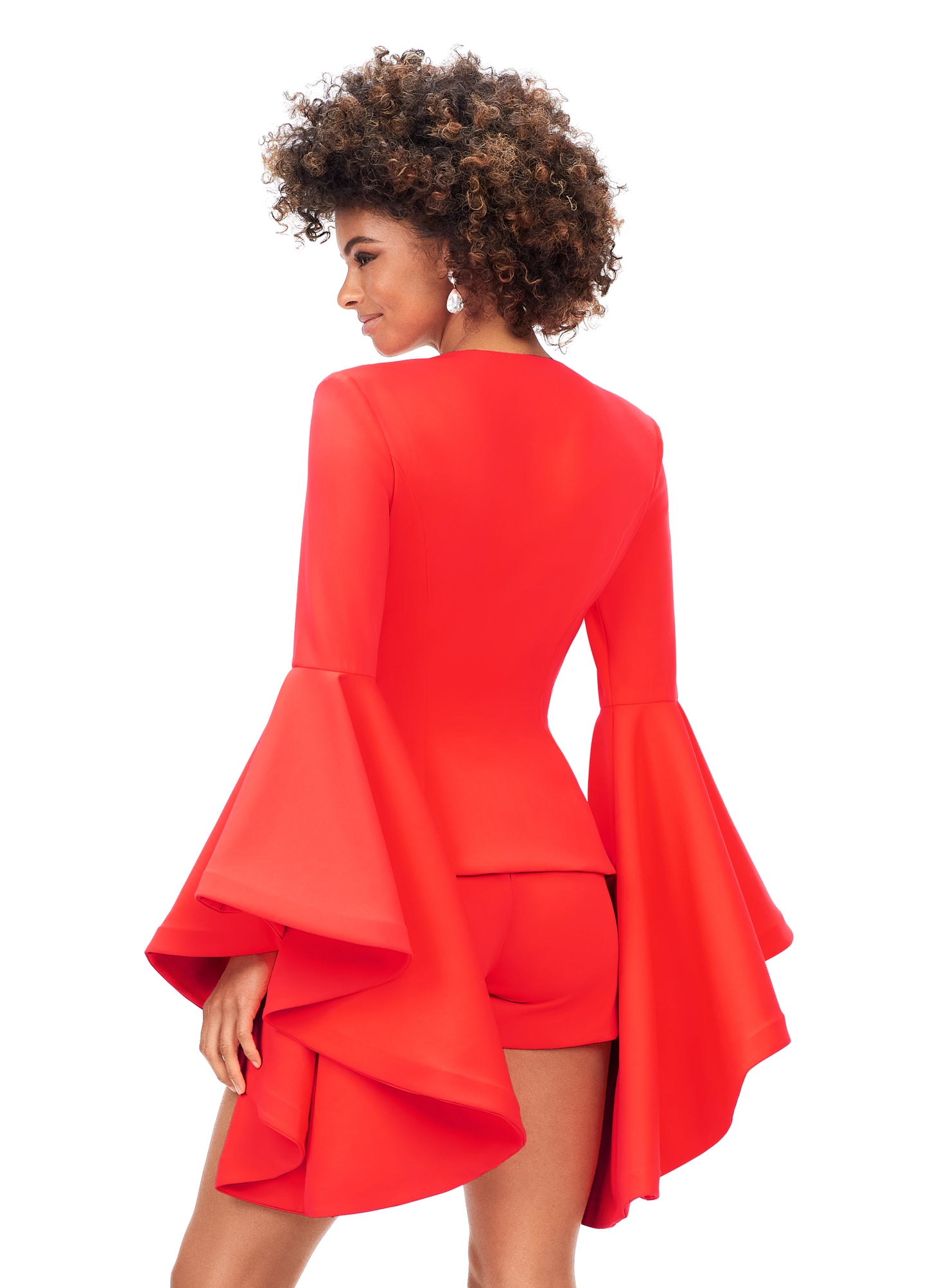 Ashley Lauren 4572 Make a statement in this fabulous two piece romper. The top features a deep v-neckline and dramatic bell sleeves.