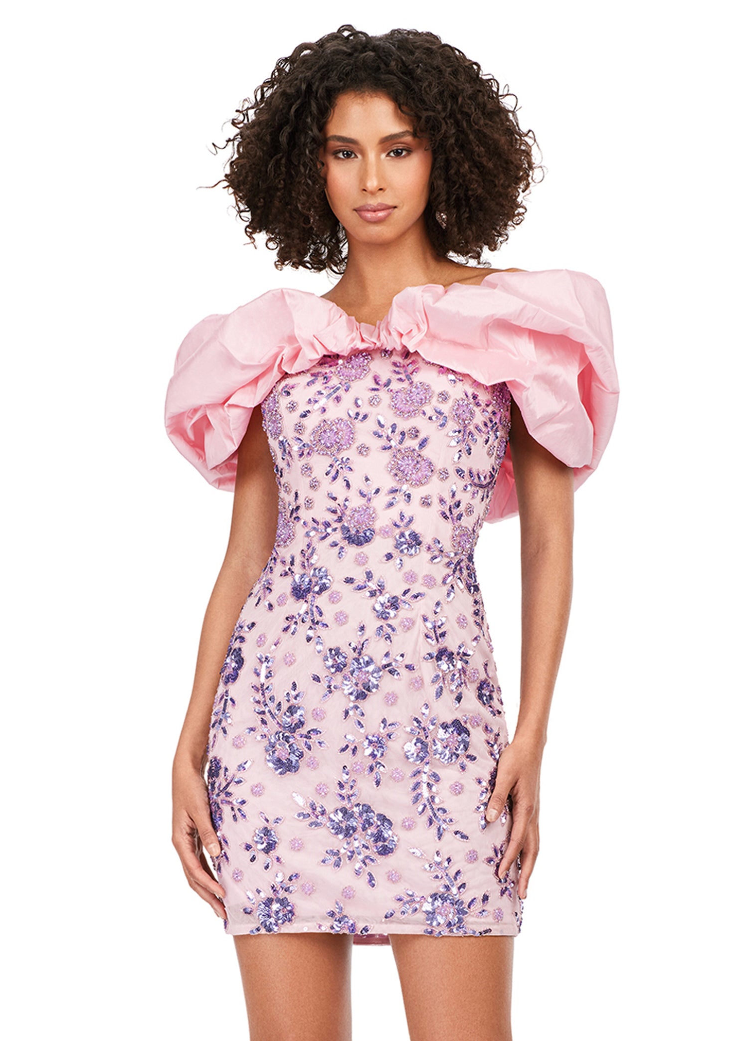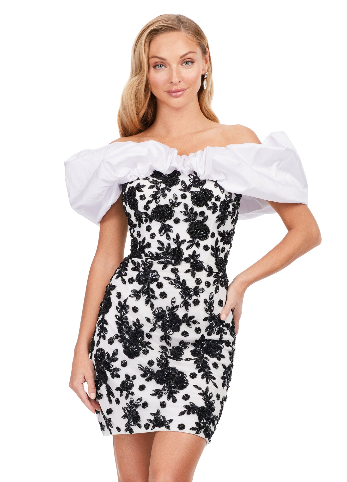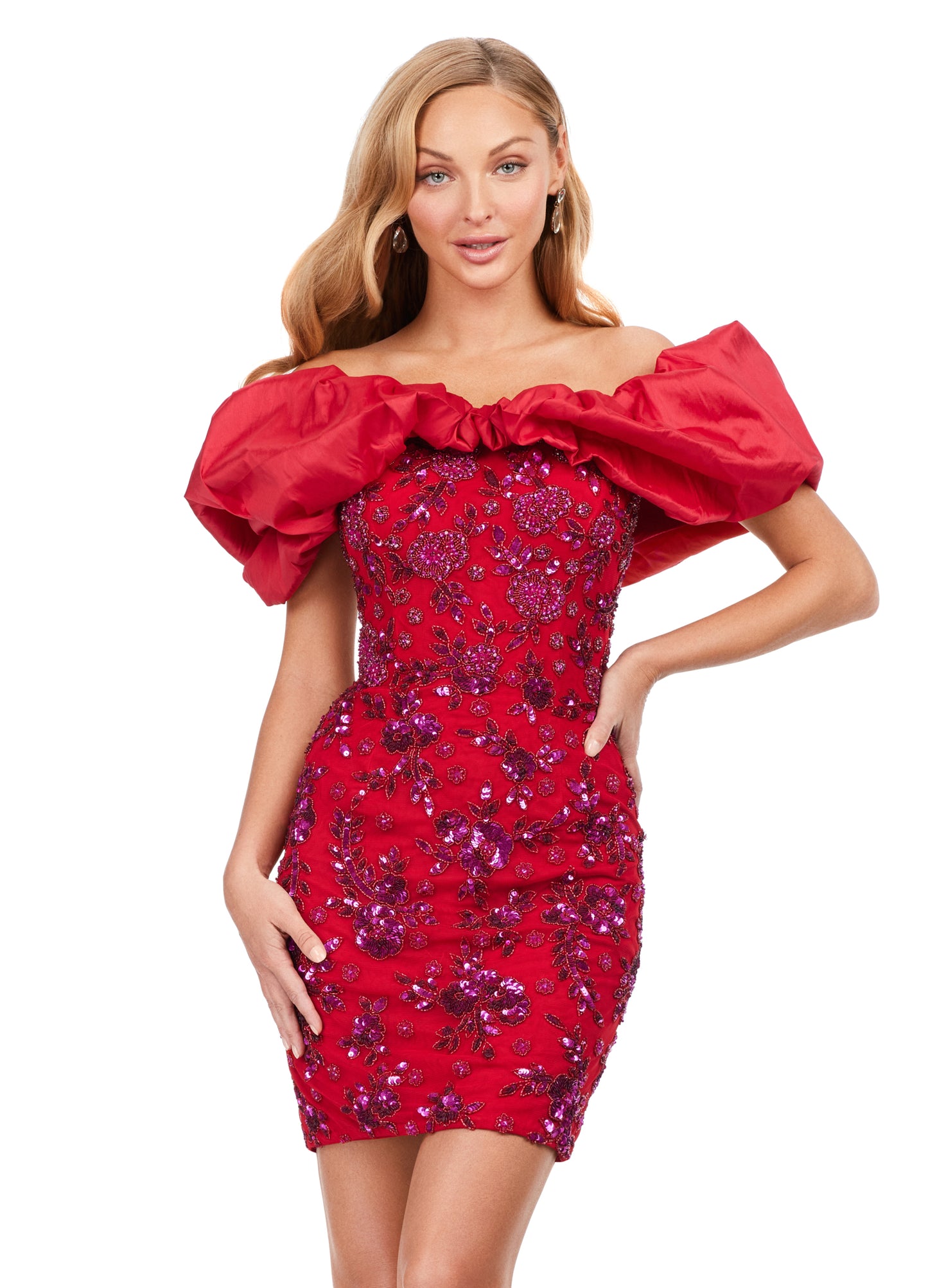 Ashley Lauren 4613 Oversized Ruffle Off The Shoulder Beaded Fitted Sequin Design Cocktail Homecoming Dress