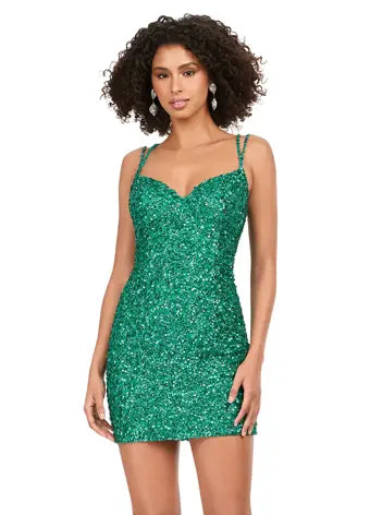 Ashley Lauren 4625 Sequin Spaghetti Strap Cocktail Dress with Lace Up Back
