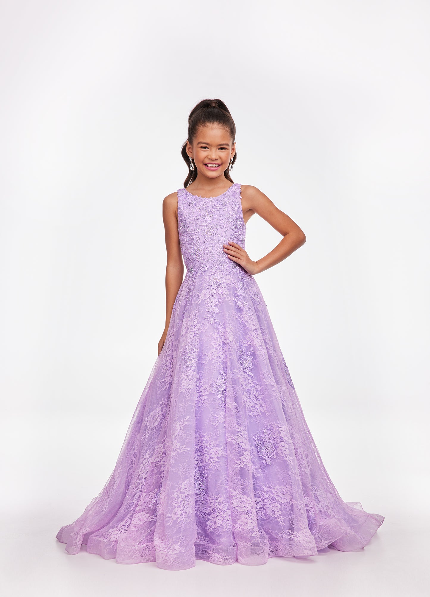 Ashley Lauren Kids 8073 Size 16 LILAC Girls Dress Long Lace A Line Ball Gown Pageant Dress High Neck