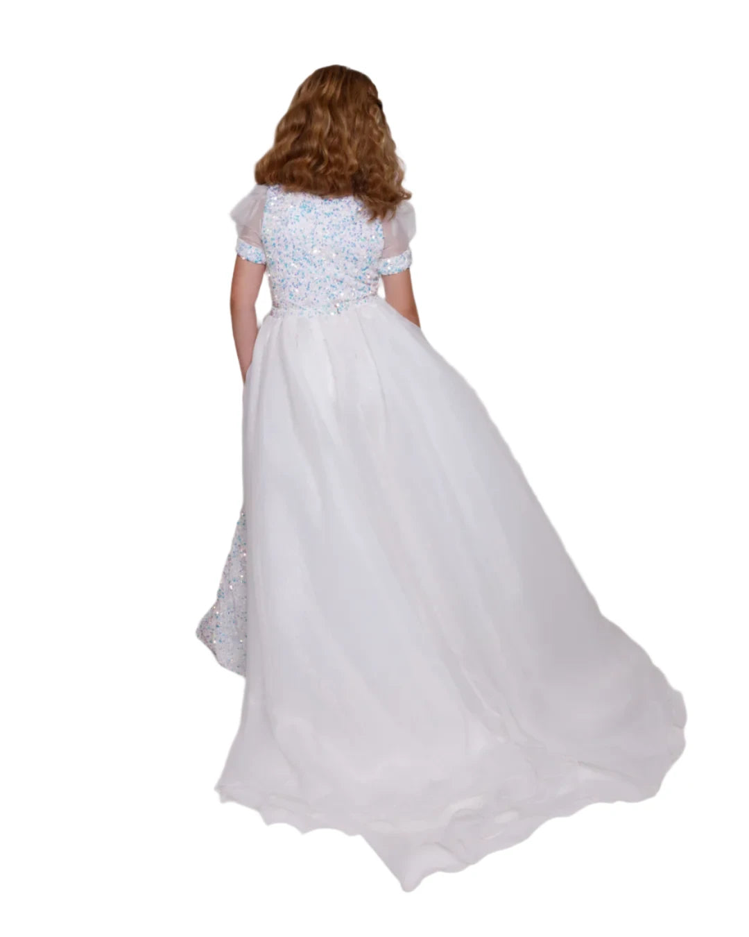 Ava Presley 38044 Girls Sequin Pageant Jumpsuit Overskirt Puff Sleeve bell bottom Formal Wear