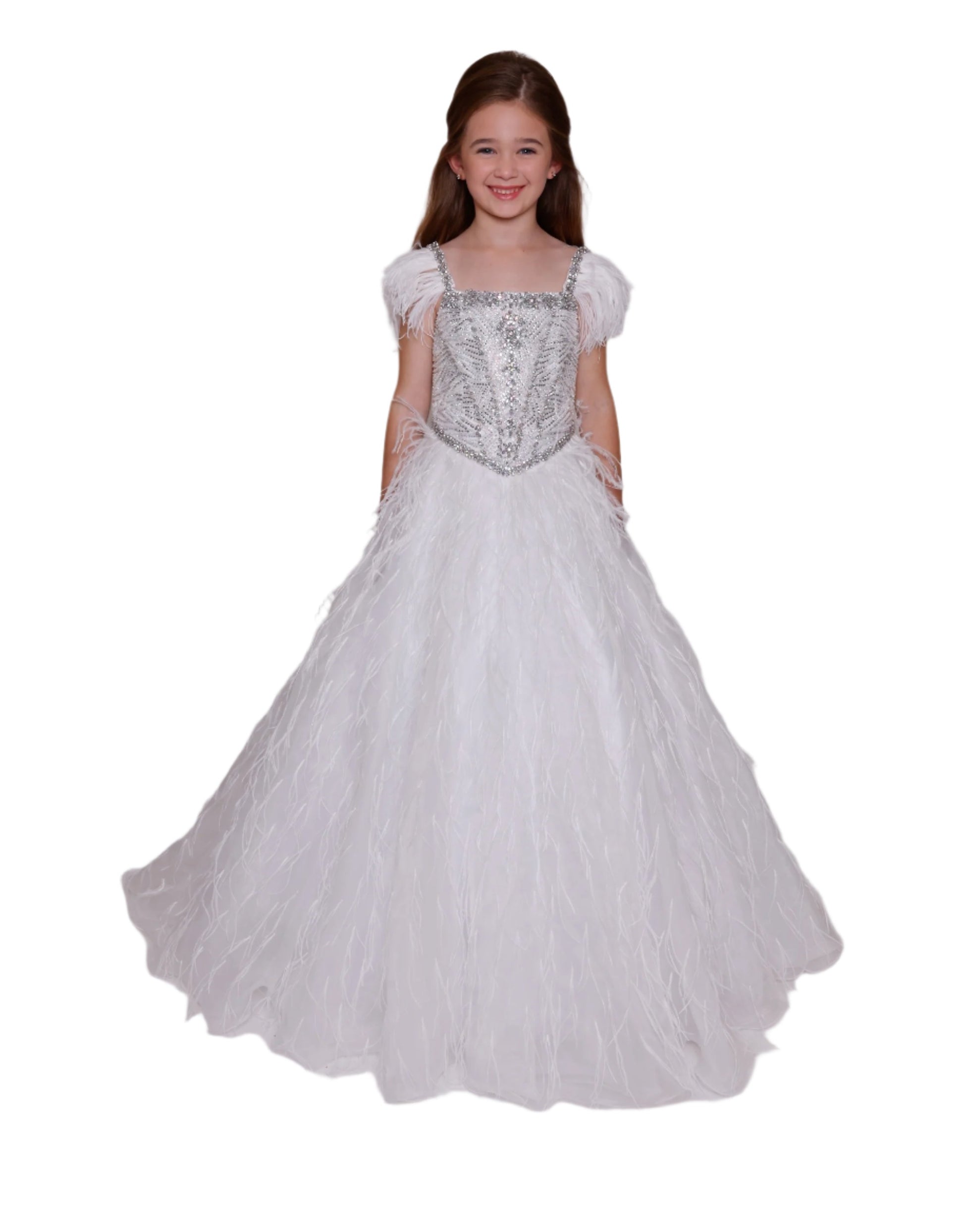 Ava Presley 39889 Size 6, 12 Off White Girls Crystal Bodice Feather Ballgown Pageant Dress Cap Sleeve Formal
