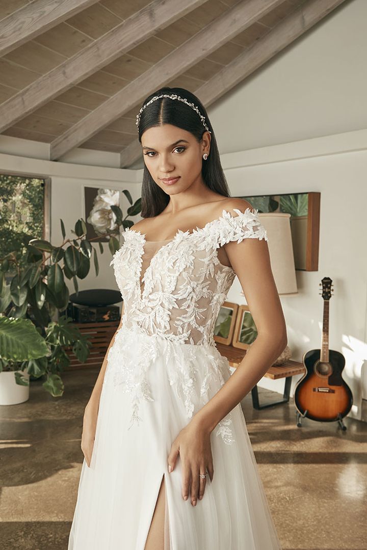 Beloved by Casablanca Bridal BL387 Remi Wedding Dress Off the Shoulder Lace Tulle Skirt