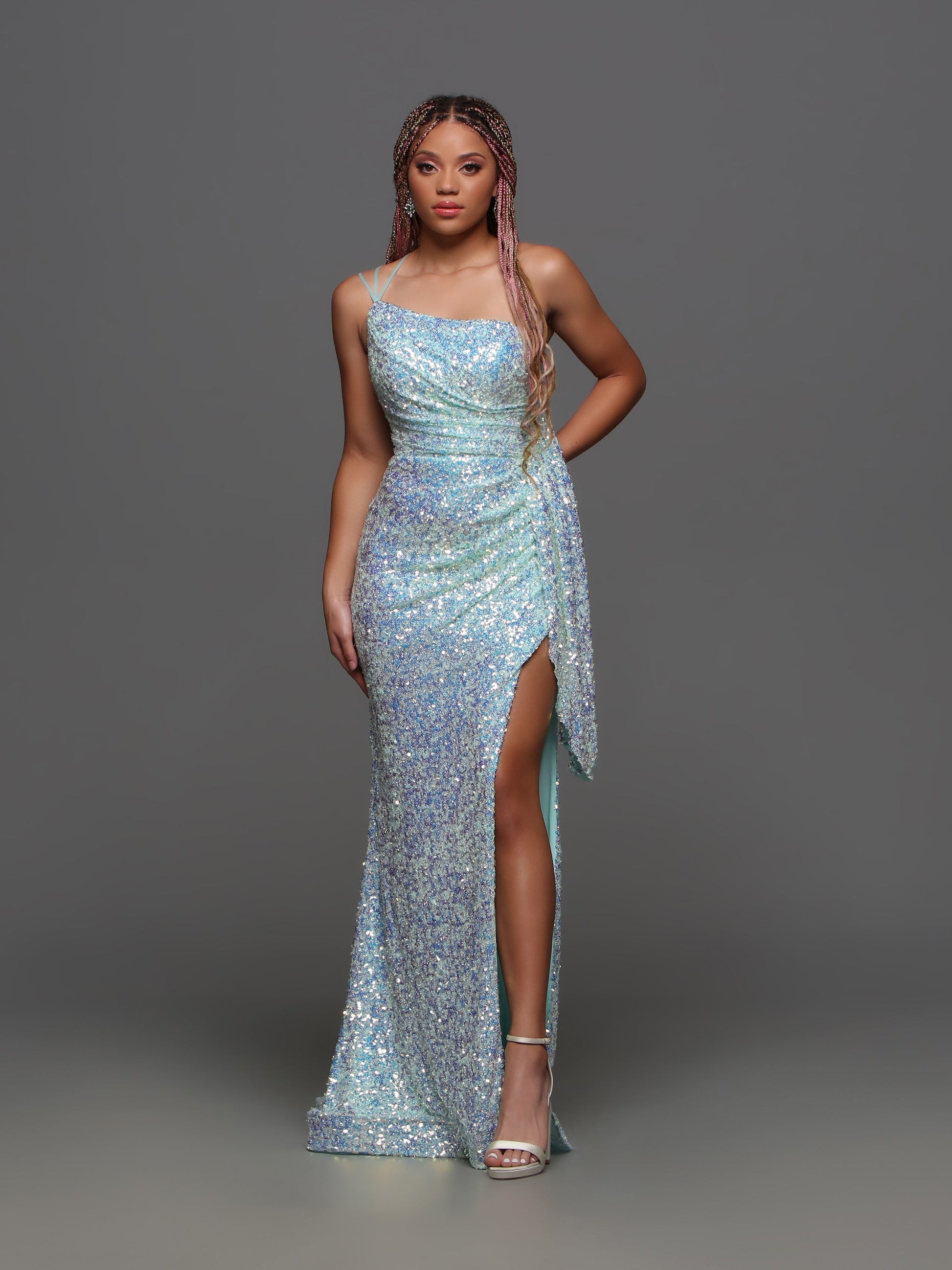 The Candice Wang 72346 prom dress boasts stunning sequins, a one shoulder design, and a high slit for an elegant and alluring look. With a draped open back, this formal gown exudes sophistication and glamour. Step out in style and turn heads at your next special occasion.