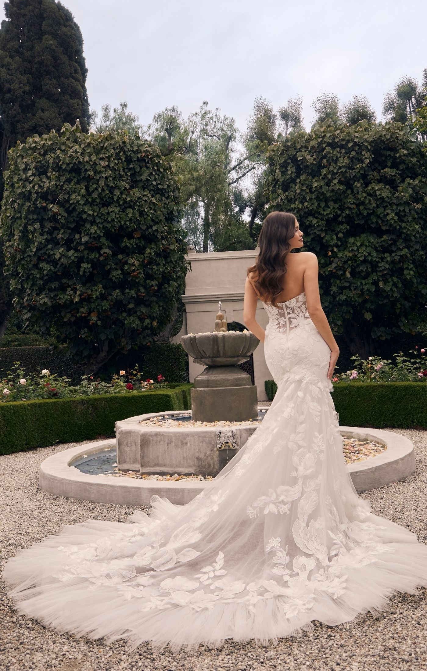 Casablanca Bridal 2552 Patrice Fit And Flare Strapless Sweetheart Neckline Floral Tulle Corset Train Wedding Dress