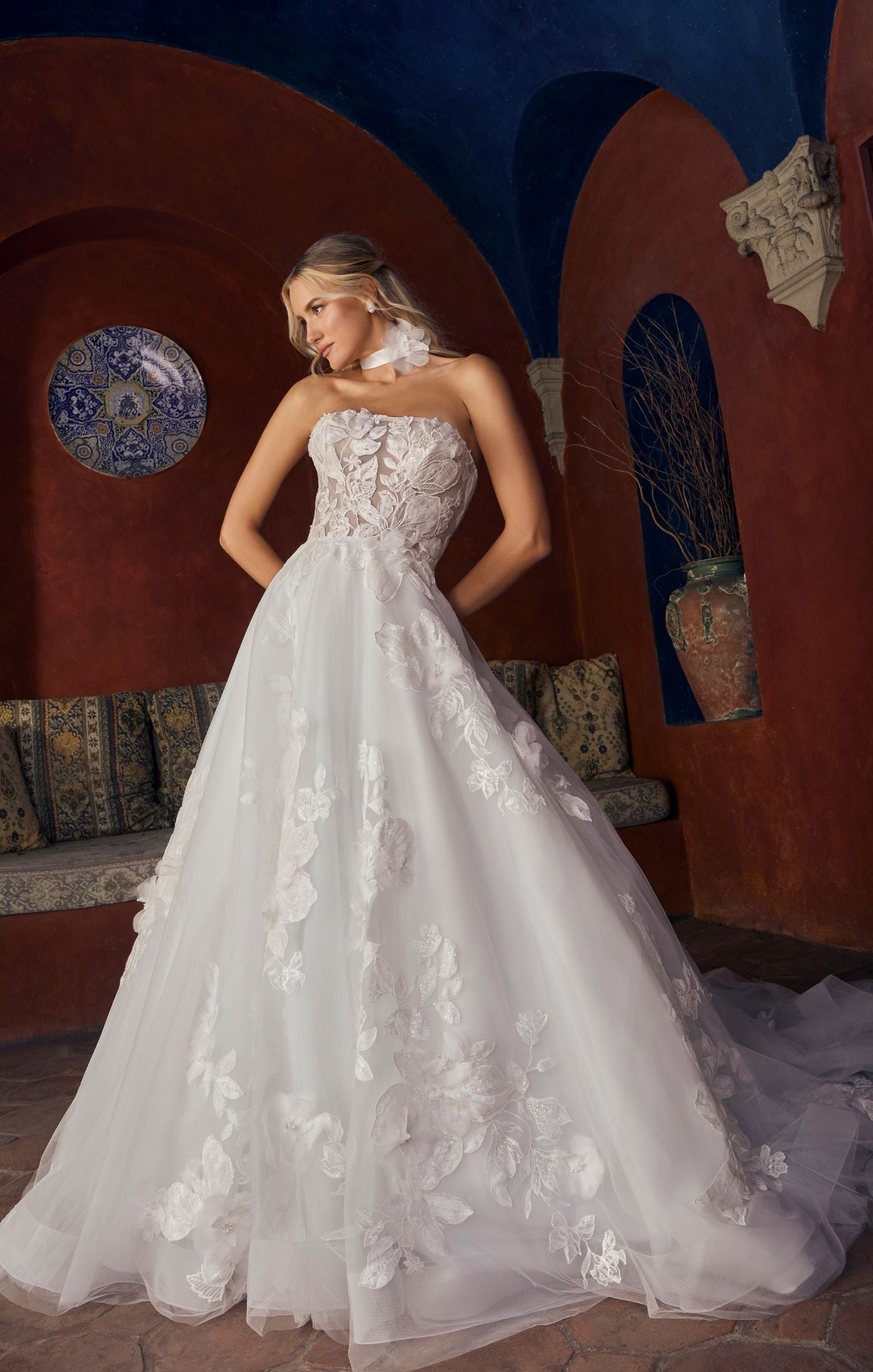 Casablanca Bridal 2553 Verity A-Line Strapless Sheer Floral Tulle Bodice Train Wedding Gown