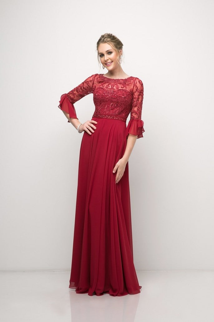 CD 781 Size 10 Long Sheer Lace Sleeve Mother Of Formal Dress Chiffon Wedding Guest