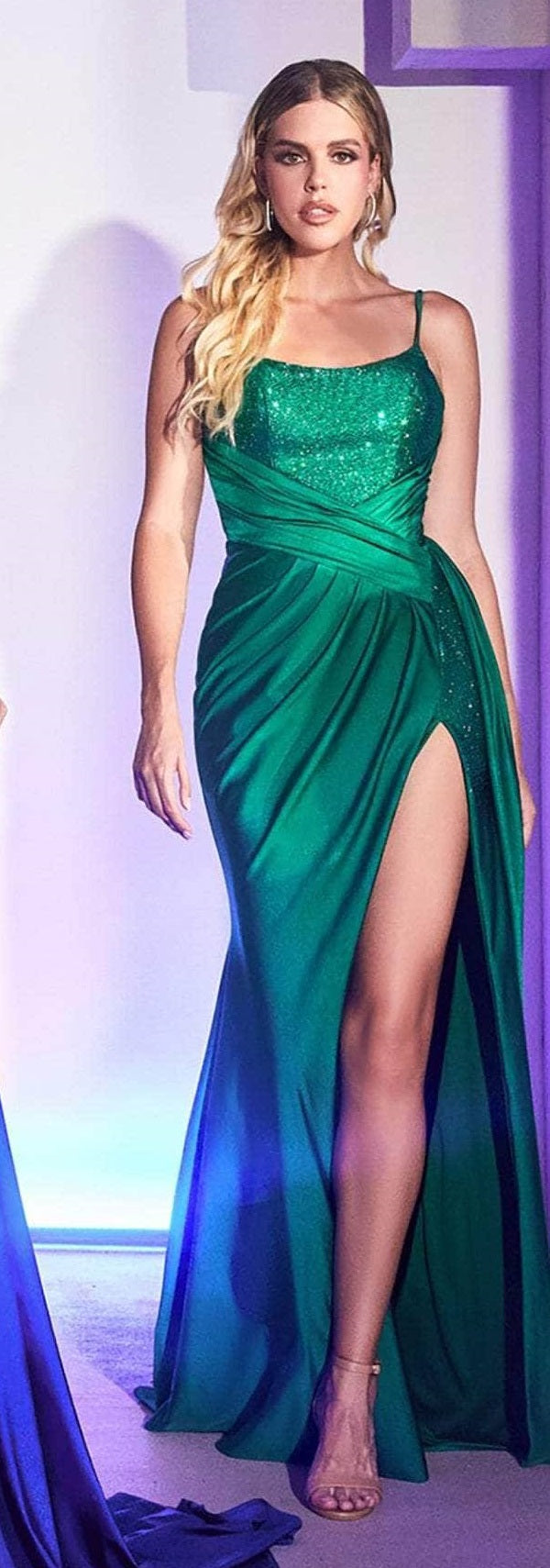 LaDivine CD0201 Size 0, 8 Emerald Long Fitted Jersey Wrap Overskirt Prom Dress Pageant Gown Rhinestone Slit