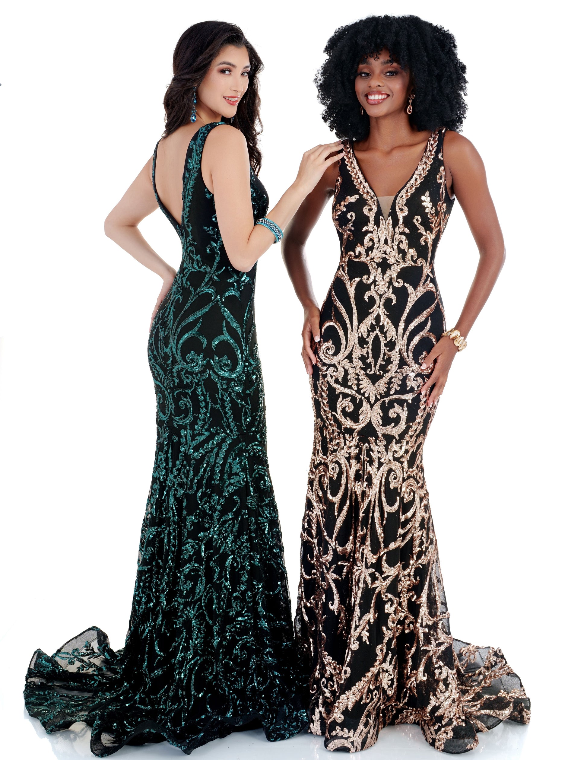 Cecilia Couture 2186 Long Fitted Sequin Lace Mermaid Prom Dress V Neck Formal Gown