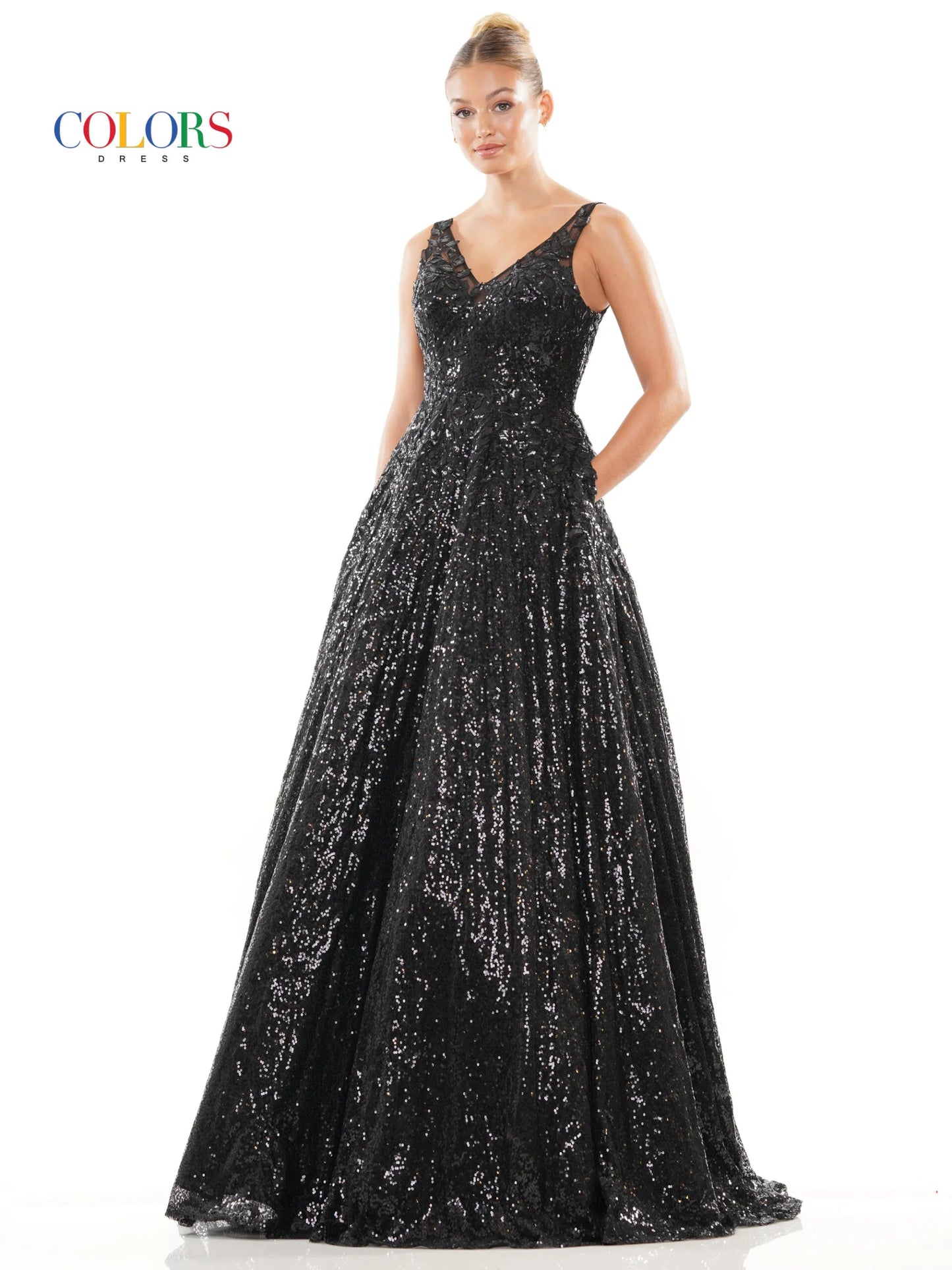 Discover elegance and sophistication with the Colors Dress 3246. This stunning A-Line Prom Dress features striking sequin lace and a flattering V-neckline. The added benefit of pockets makes it perfect for any formal occasion. Complete with a sheer back for a touch of allure.