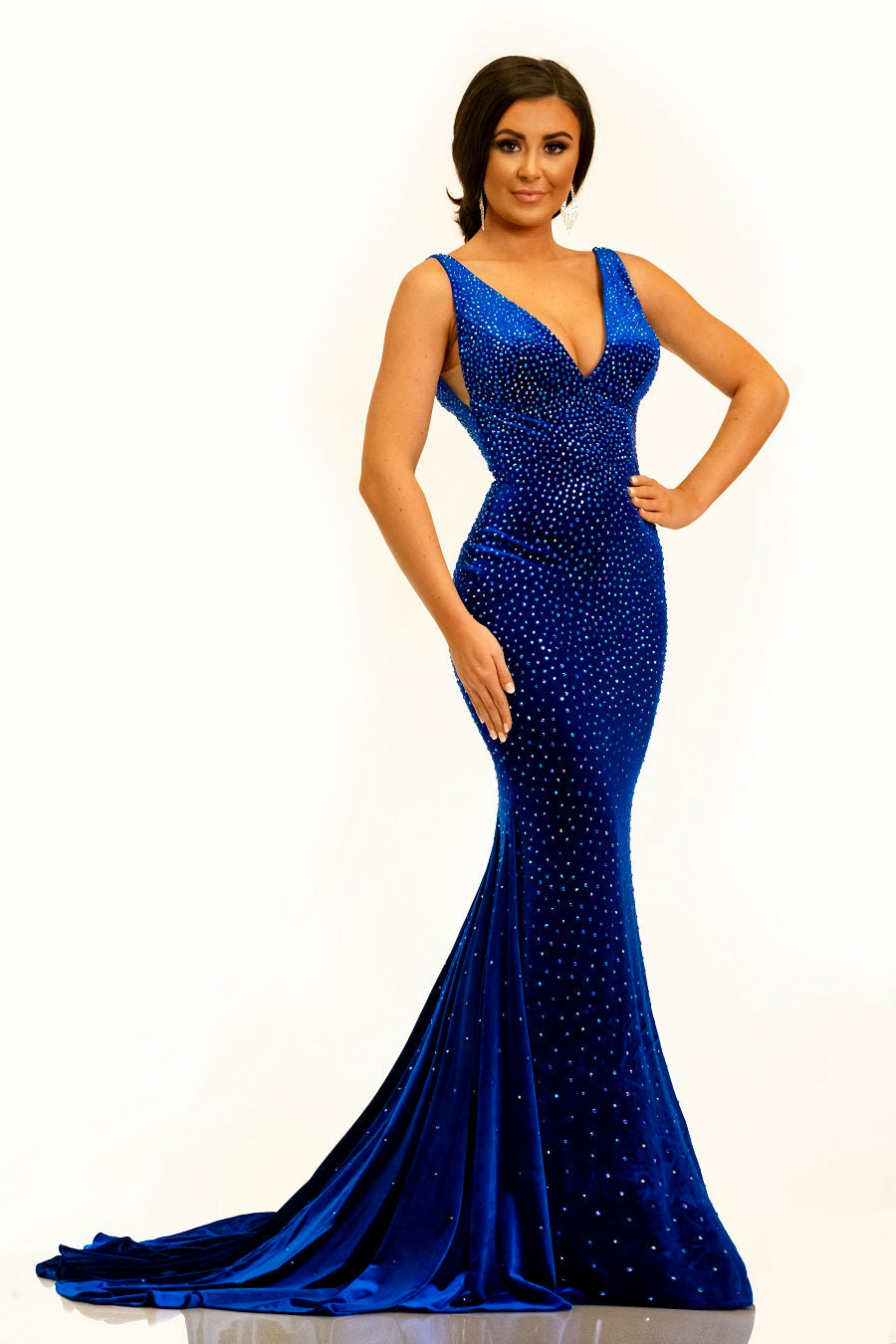 Johnathan Kayne 2308 Evening Pageant Dress. This is a lush evening and pageant dress with hot stone embellishments throughout. It has a v neckline and sheer panels at the bust and under the arms. The mermaid skirt has a sweeping train.