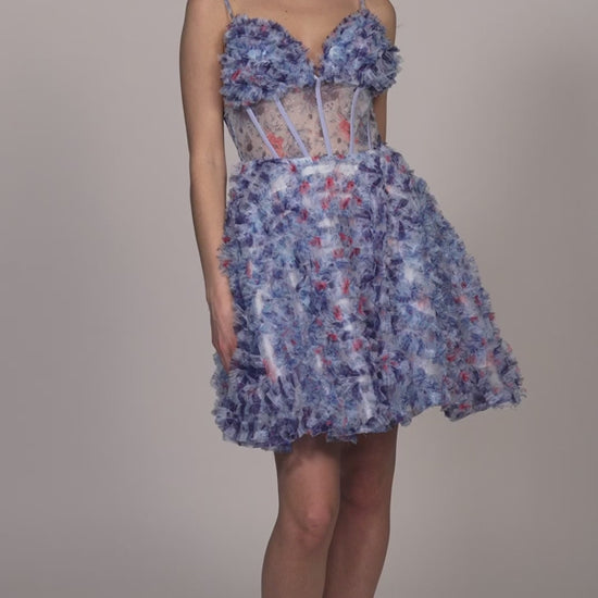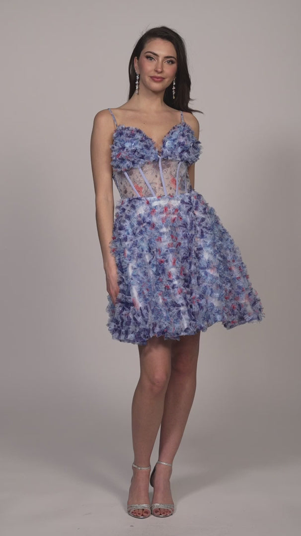 Dave & Johnny 11768 Short Ruffle Floral Print Homecoming Dress Sheer Corset A Line Cocktail Gown