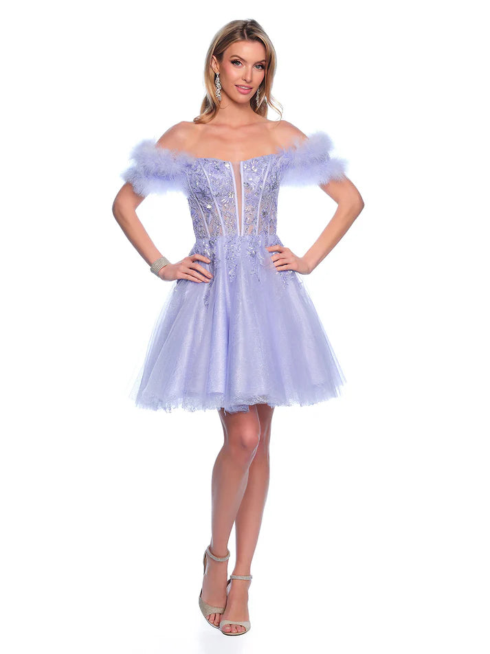 Expertly designed and beautifully crafted, the Dave & Johnny 11775 dress features shimmering lace, an elegant A-line silhouette, and delicate feather accents. Perfect for homecoming or cocktail events, this off the shoulder gown exudes sophistication and grace.