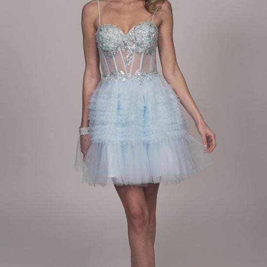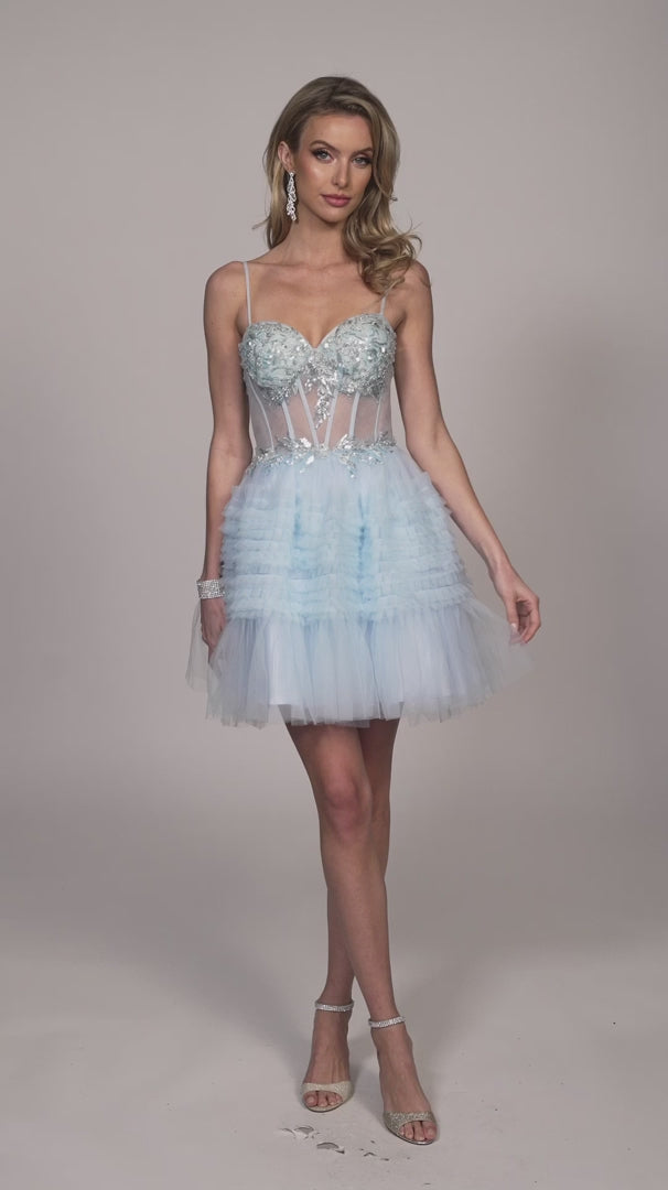 Dave & Johnny 11888 Sheer Corset Ruffle A Line Homecoming Dress Sequin Cocktail Gown Layered