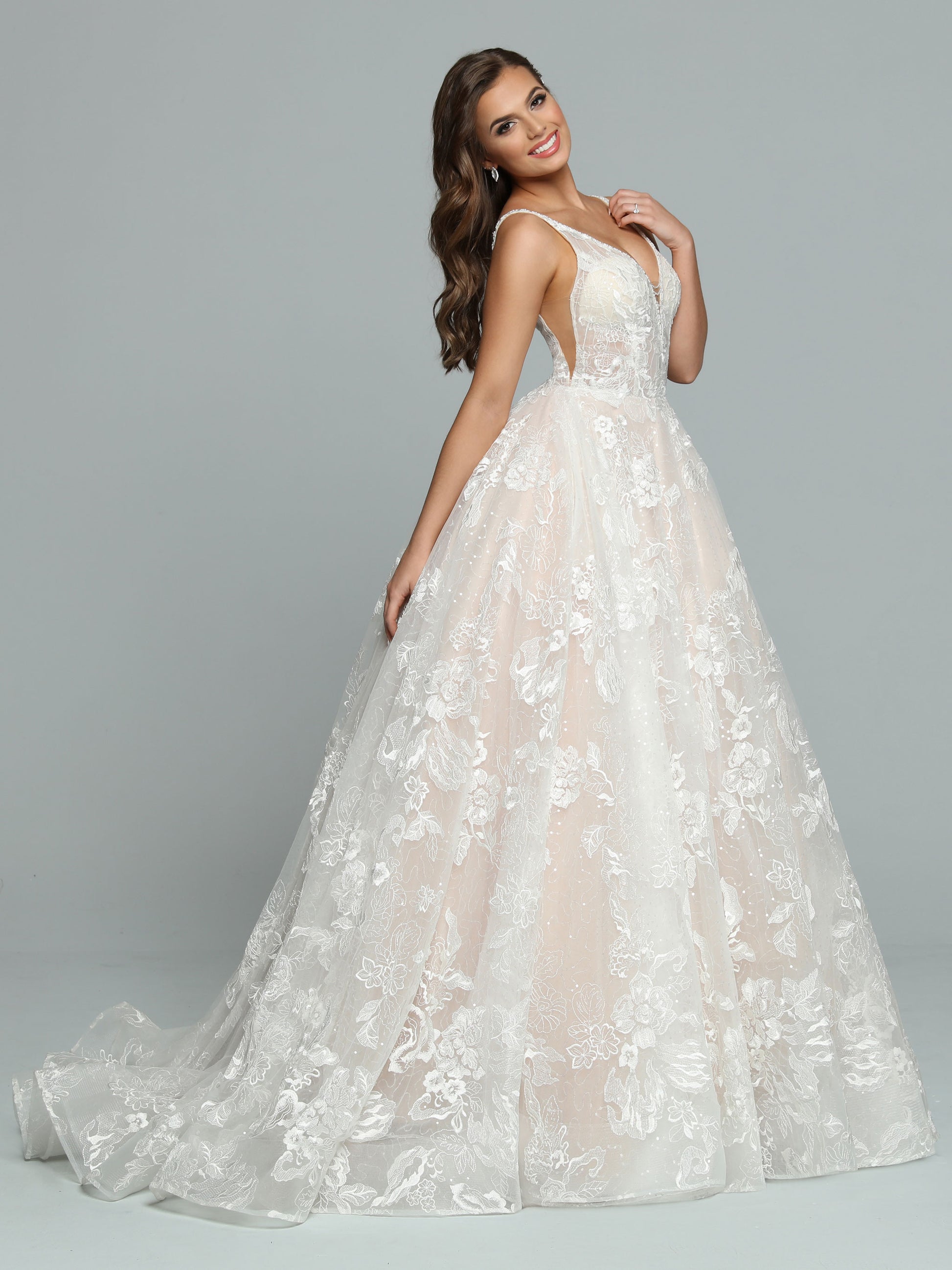 Davinci Bridal 50663 Long Shimmer Ballgown Wedding Dress Pockets V Neck Lace Gown