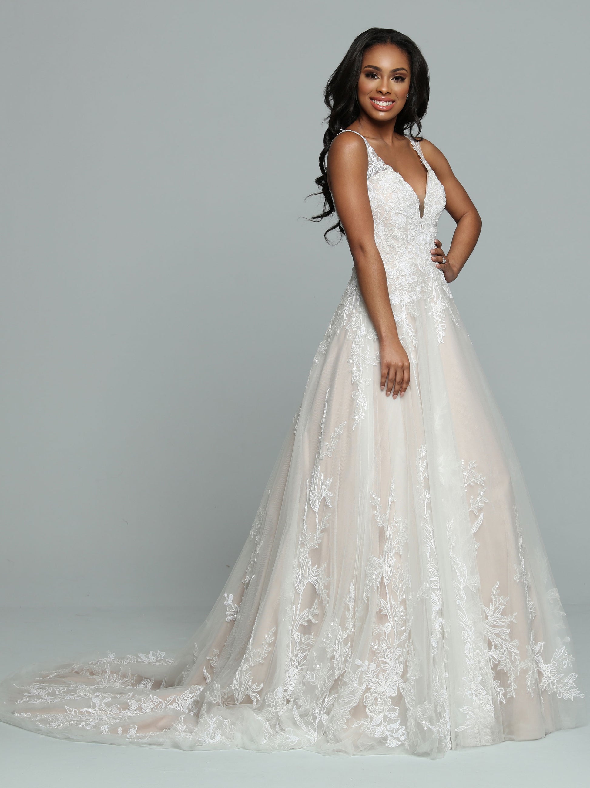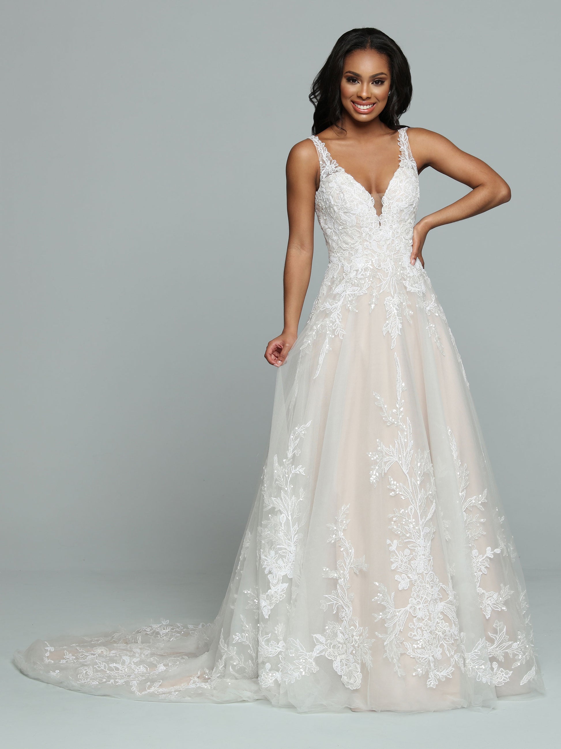 Davinci Bridal 50672 A line Lace Ballgown Wedding Dress Sheer Back Bridal Gown