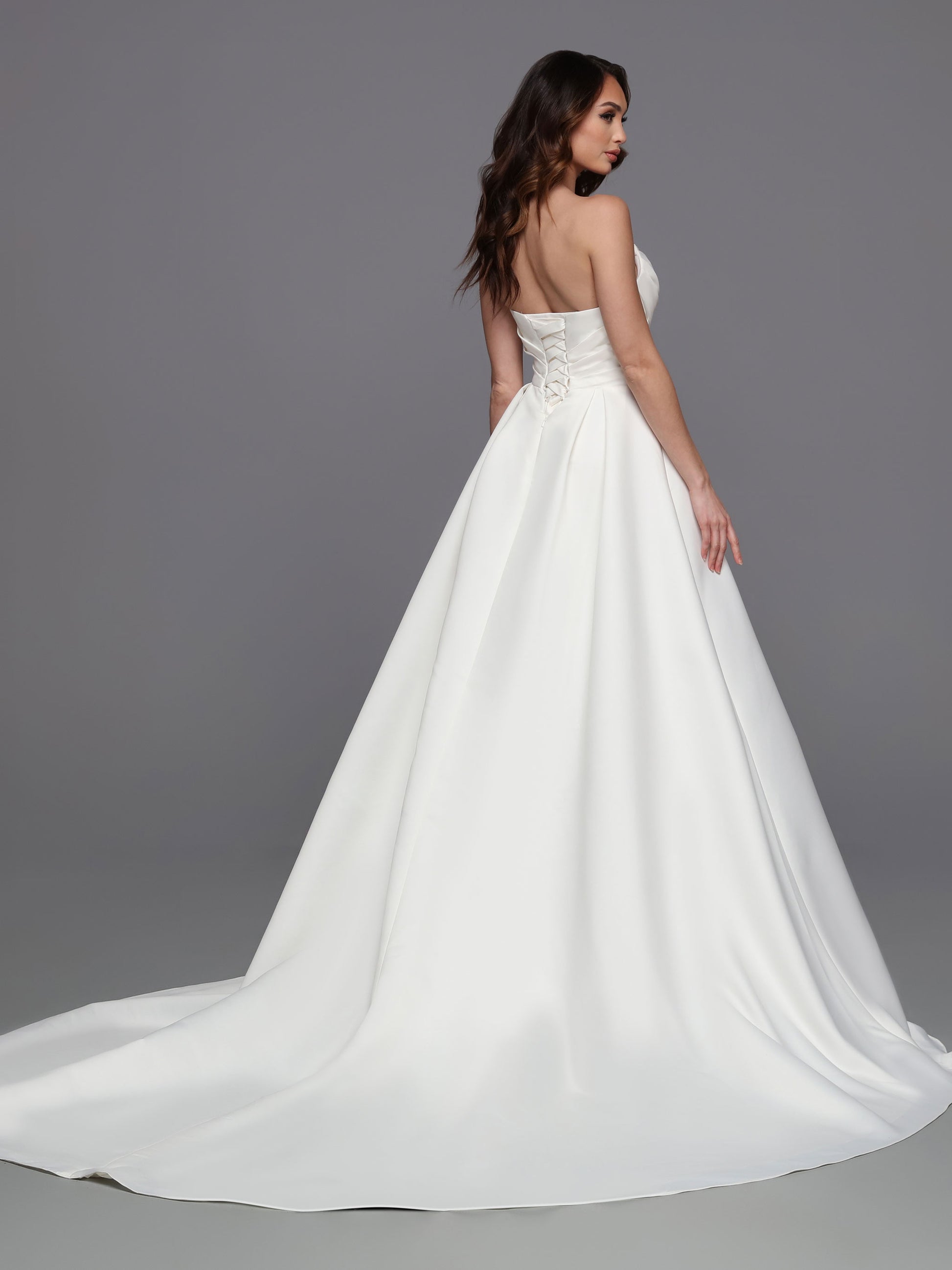This stunning gown from Davinci Bridal is made from luxe satin and features a strapless faux-wrap bodice with a corset back and a slit maxi skirt for a modern, romantic look. The 50715 is perfect for a bride who wants a timeless style for her special day.