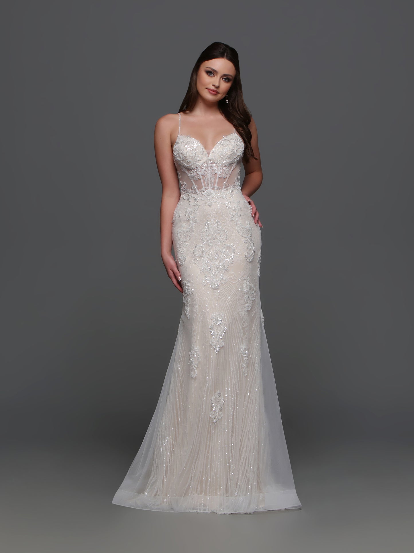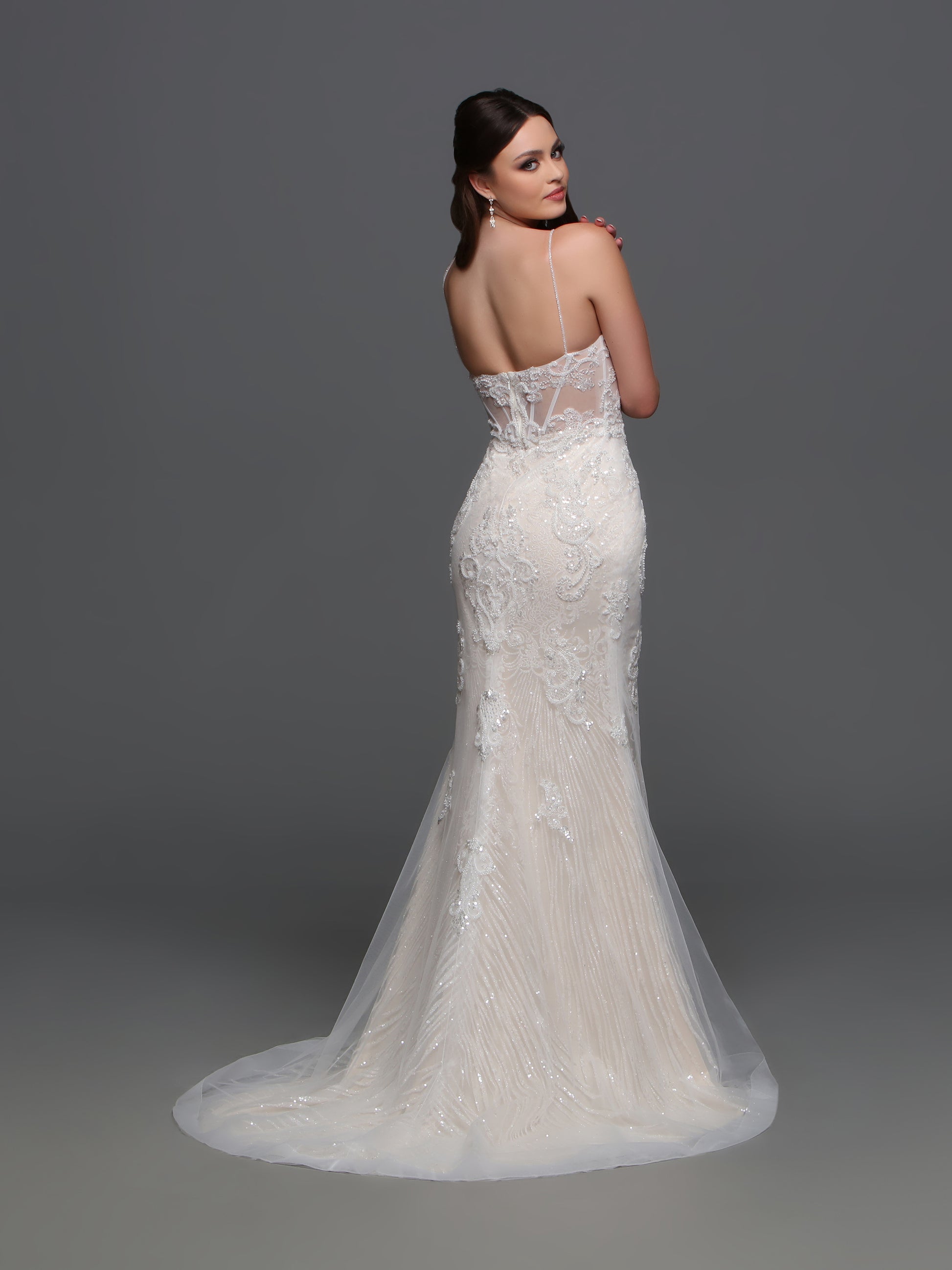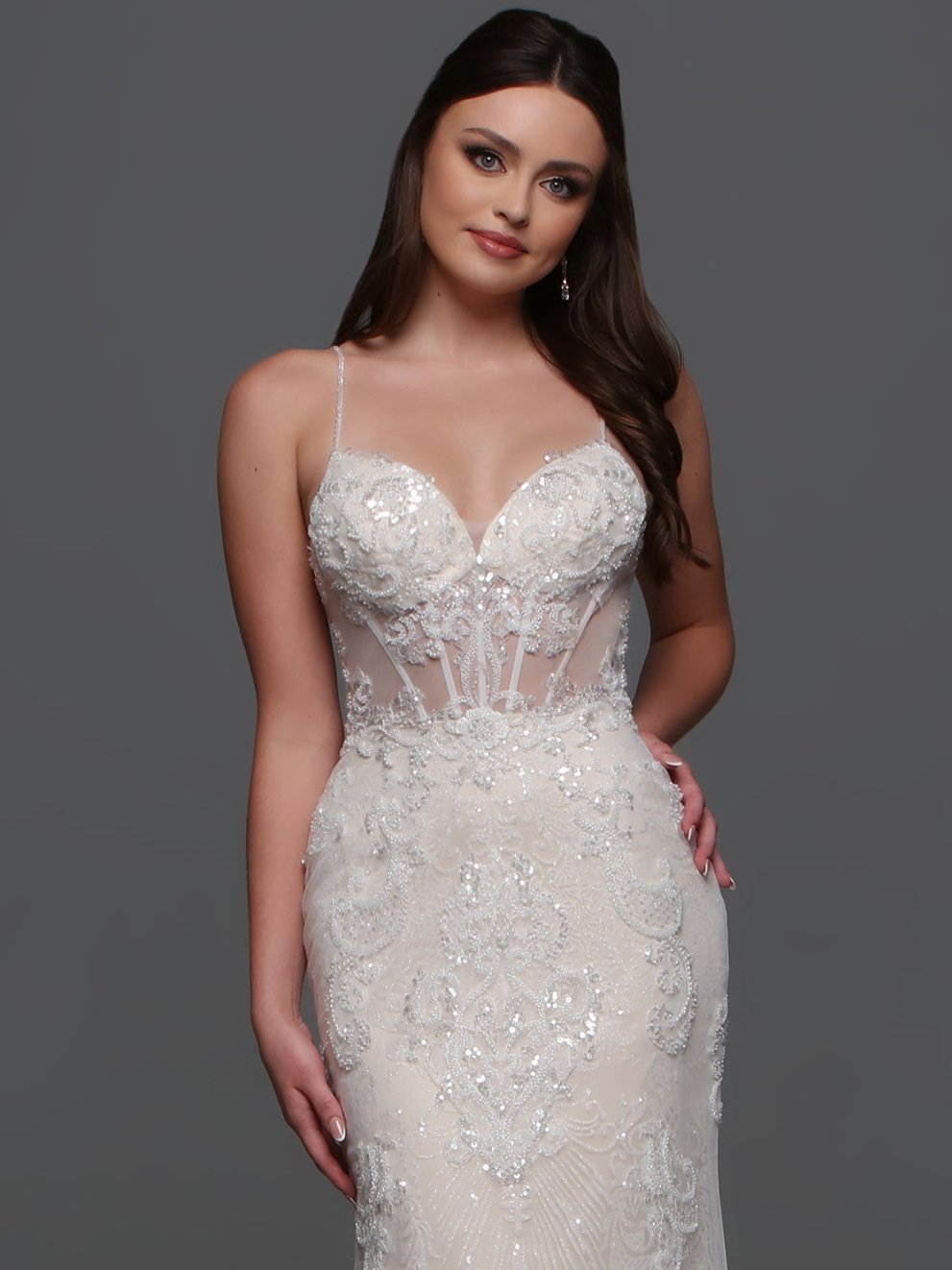 Davinci Bridal F123 Long Beaded Sheer Wedding Dress Mermaid Bridal Gown V Neck Shimmer