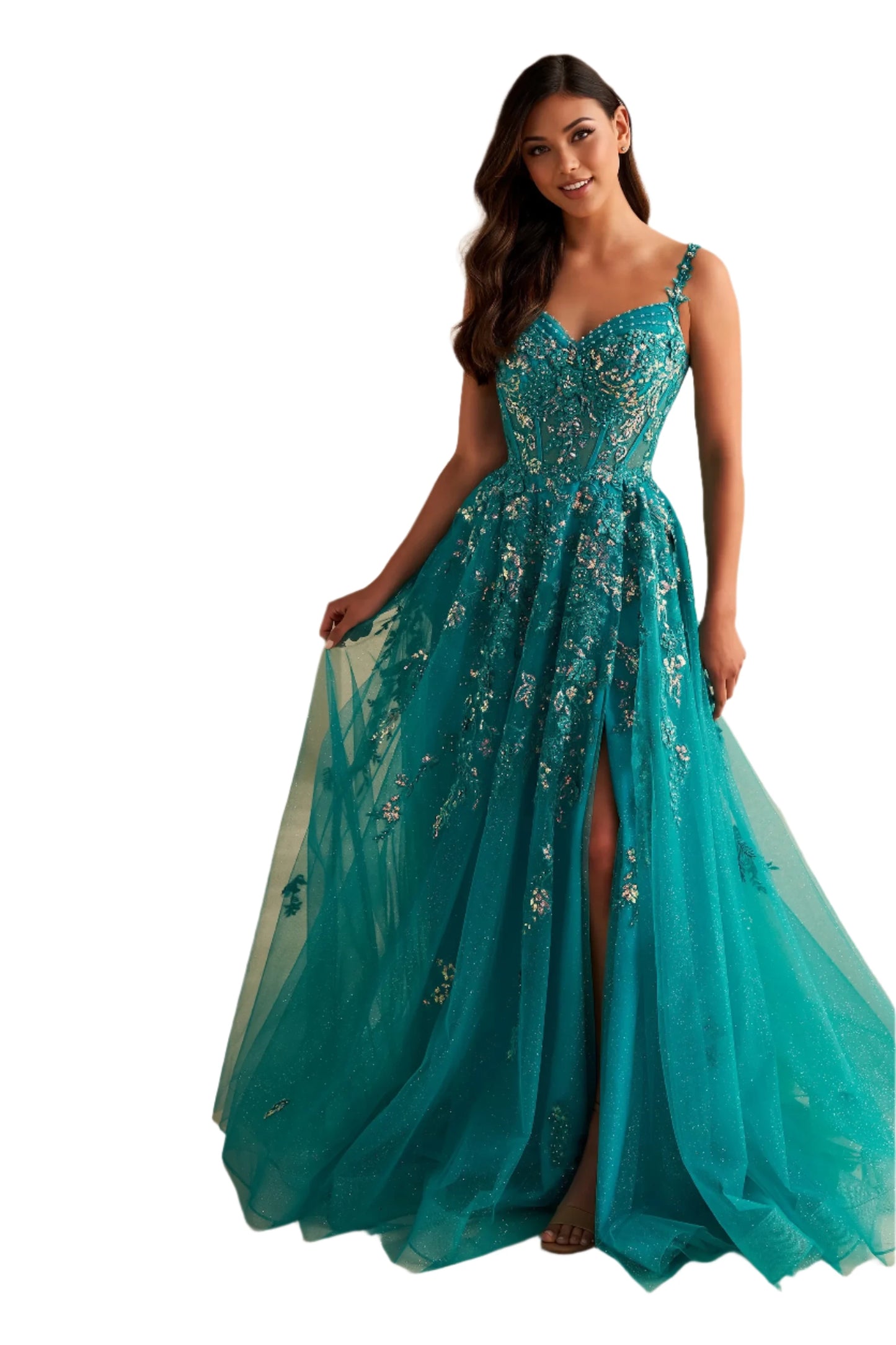 Ellie Wilde EW36204 Size 2, 22 Jade Sequin Lace Corset Prom Dress Beaded off the shoulder Gown