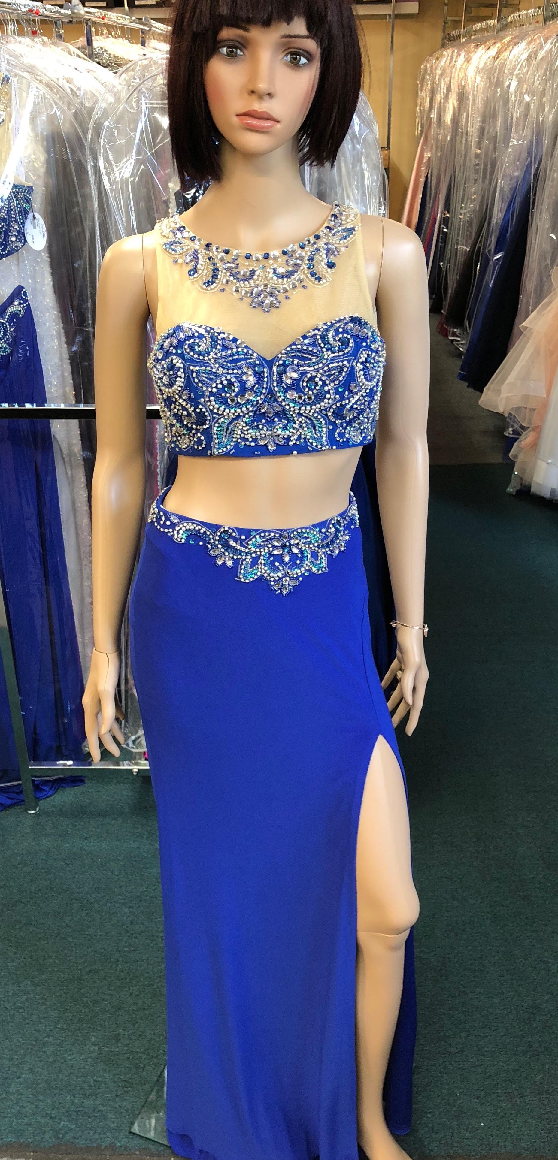 Envious Couture 16089 Size 0 Royal Two Piece Formal Pageant Dress Sheer Neckline Slit