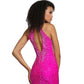Johnathan Kayne 2037 is a long stretch fitted Prom Dress, Pageant Gown & Formal Evening Wear. This Dress Features a 4 way Stretch Lycra material for a perfect & Comfortable fit. This Dress Has a Deep Plunging Neckline with a mesh insert. High Illusion neckline with an embellished choker. Sheer Mesh Cutout side panels. Open Keyhole Cutout Back. This Gown has Crystal Embellishments along the entire dress. Concentrating on the top & Bodice dispersing as they cascade into the Flared skirt. This Trumpet Skirt features yards of extra material for a lush mermaid effect. Sweeping train in the back.