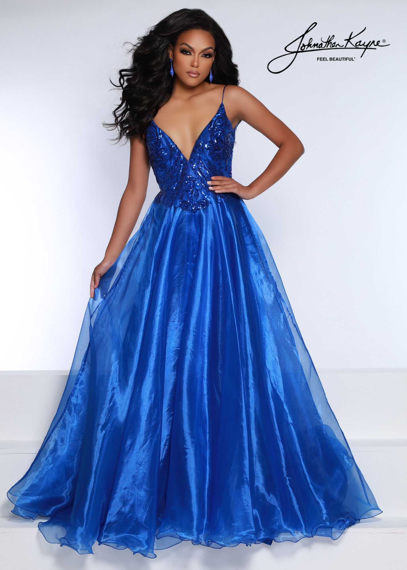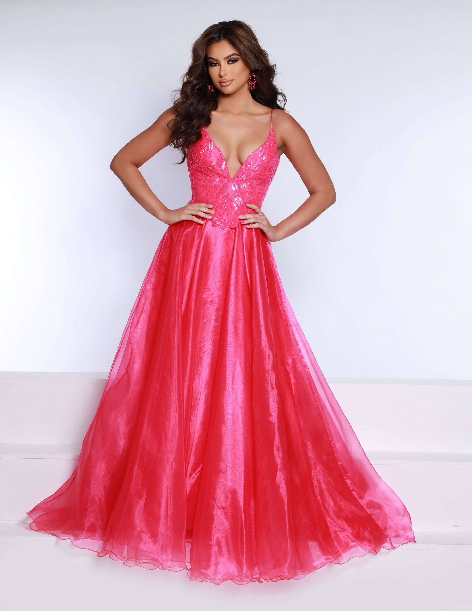 Johnathan Kayne 2601 Be a showstopper at your next formal dressed to the nines in this breathtaking Johnathan Kayne dress! The sequin stretch mesh bodice with a deep-v neckline will have you feeling your best, while the organza ballgown skirt adds a touch of elegance to any occasion. Show off your style in this hot pink stunner!