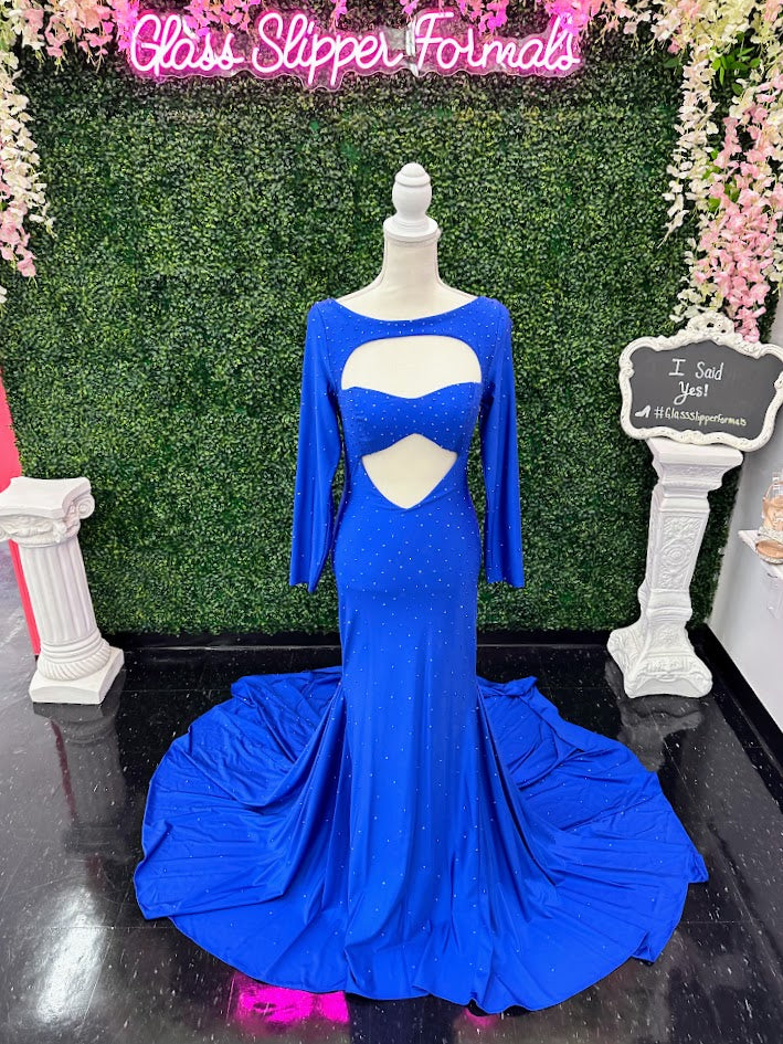 Johnathan Kayne 2639 Size 4 Royal Long Sleeve Fitted Cutout Formal Prom Dress Evening Gown Crystals
