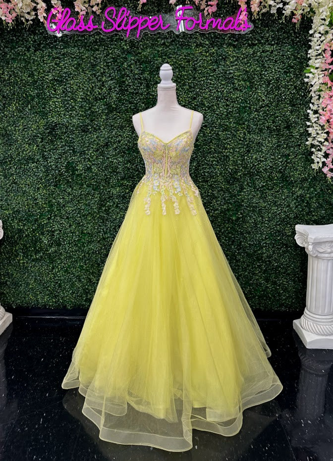 Johnathan Kayne 2686 Size 4 Yellow lace studded corset A Line Ballgown Prom Dress