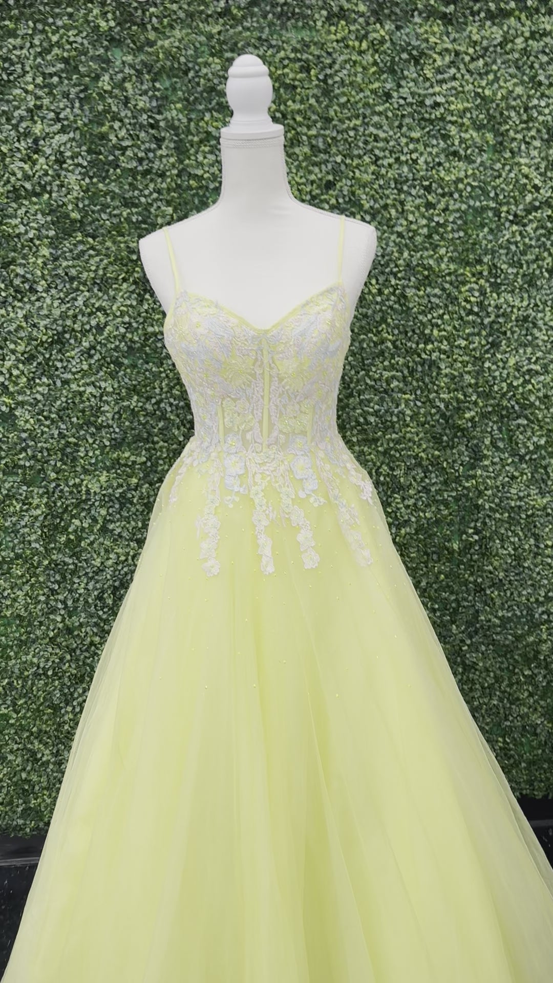 The Johnathan Kayne 2686 A-Line ballgown is perfect for your next special event. This size 4 dress is made with luxurious yellow lace and features stunning studded detailing on the corset. Experience unparalleled elegance and make a statement in this unforgettable ensemble.