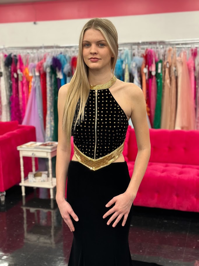 Experience luxury and elegance in the Johnathan Kayne 2711 dress. Featuring detachable off-the-shoulder long sleeves, this velvet dress is adorned with sparkling crystals. The backless design and liquid beading along the side cutouts add a touch of glamour, while the adjustable zipper neckline ensures a perfect fit & Modest or Daring Look! Elevate your style with this show-stopping piece.