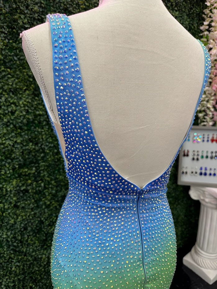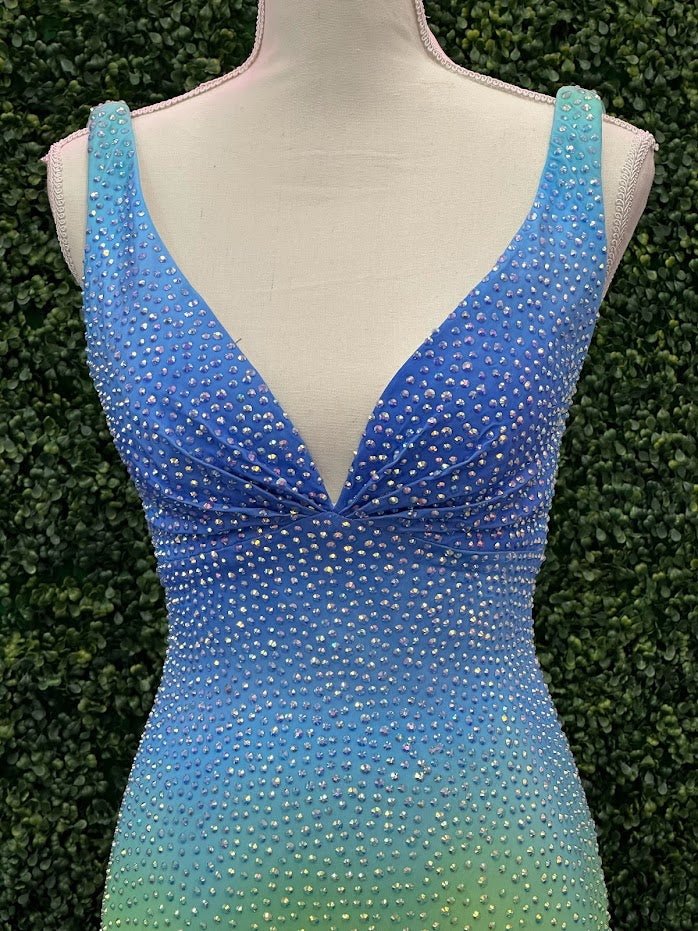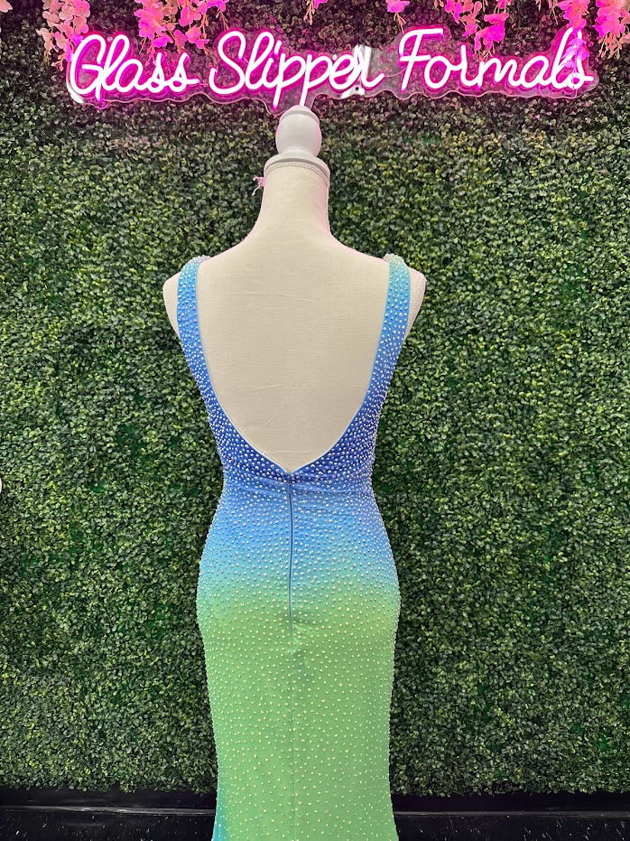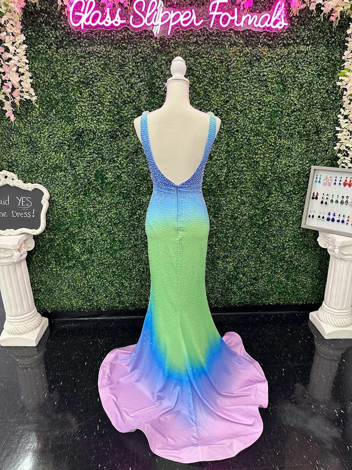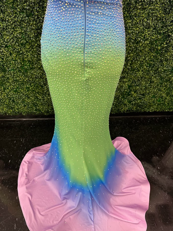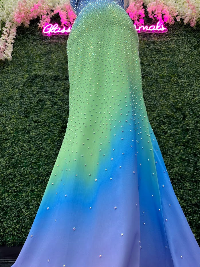 Johnathan Kayne 9213 Size 4 Custom Ombre Crystal Long Fitted Prom Dress Evening Gown