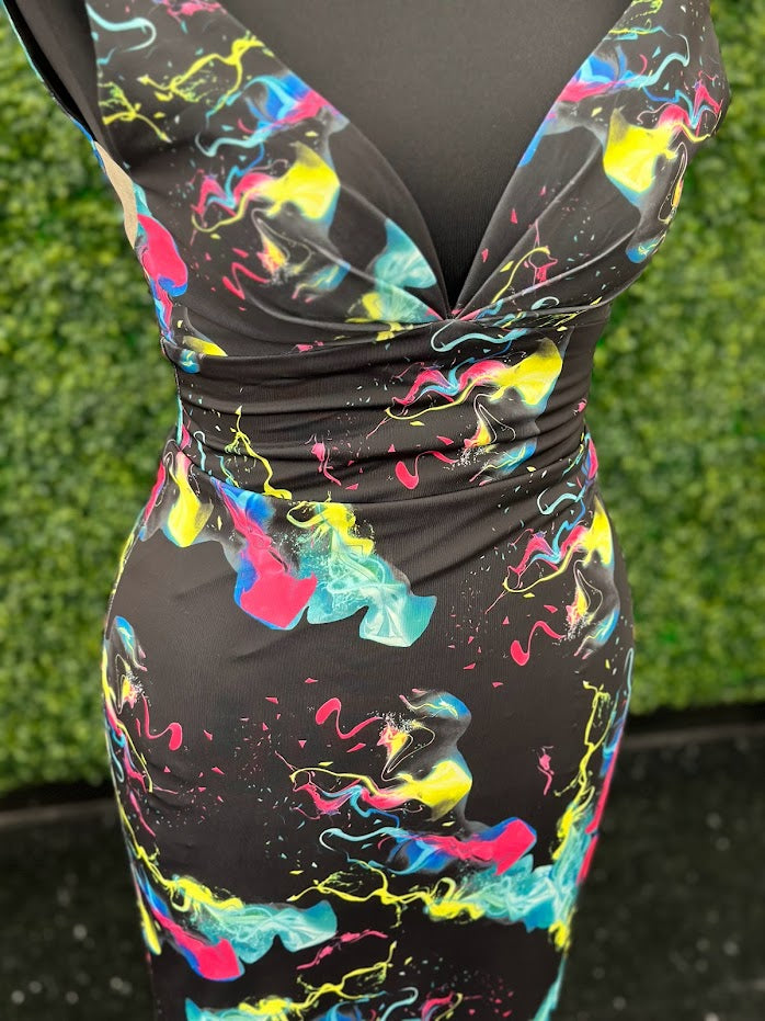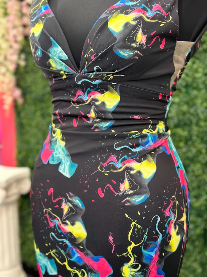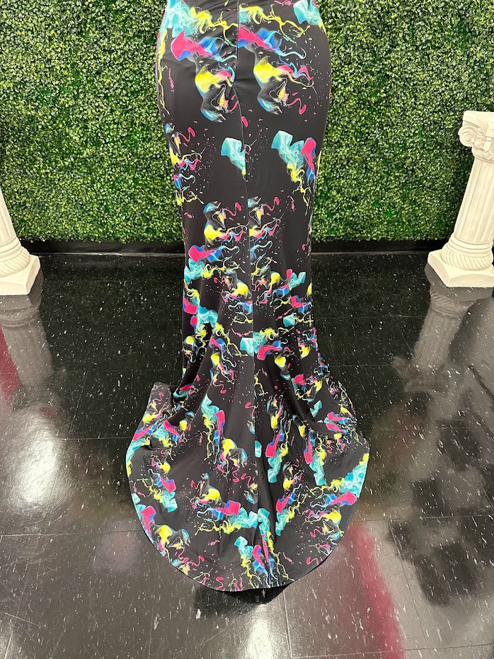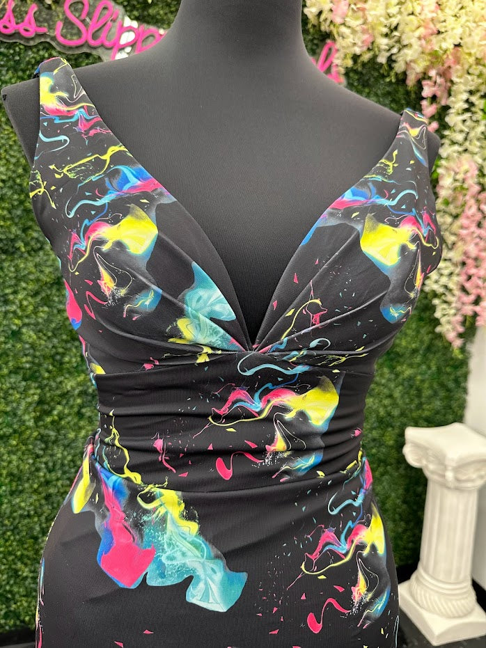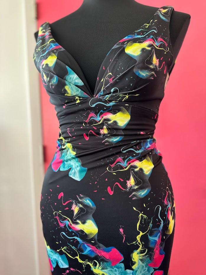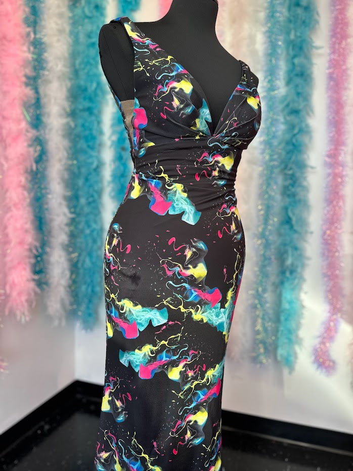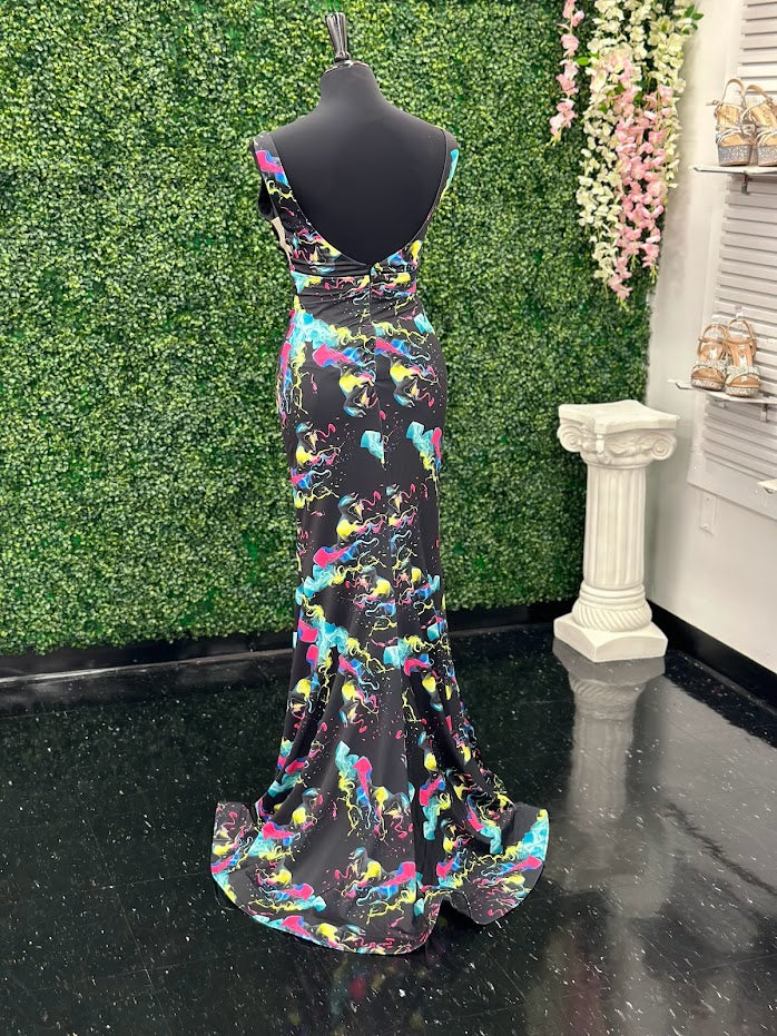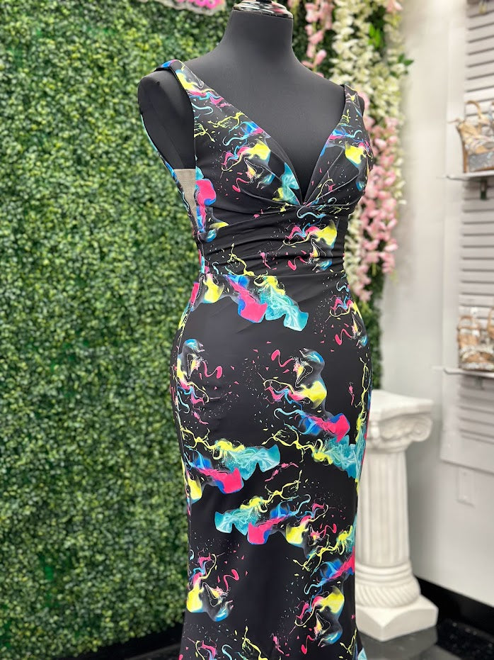 Johnathan Kayne 9213 Size 4 Smoke Bomb Fitted Neon Jersey Prom Dress Formal V Neck