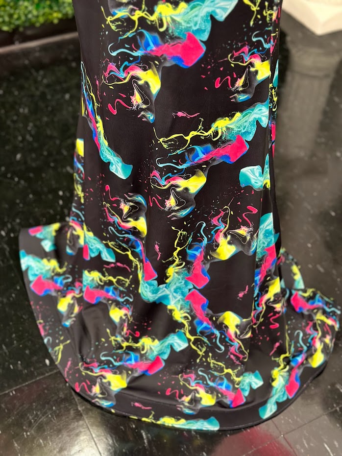 This Johnathan Kayne 9213 prom dress is a sophisticated showstopper. Crafted from neon jersey fabric and featuring a fitted silhouette, this floor-length gown makes a stunning statement. Its V neckline and Smoke Bomb coloring add to its modern look. Get ready to shine in this unforgettable style.