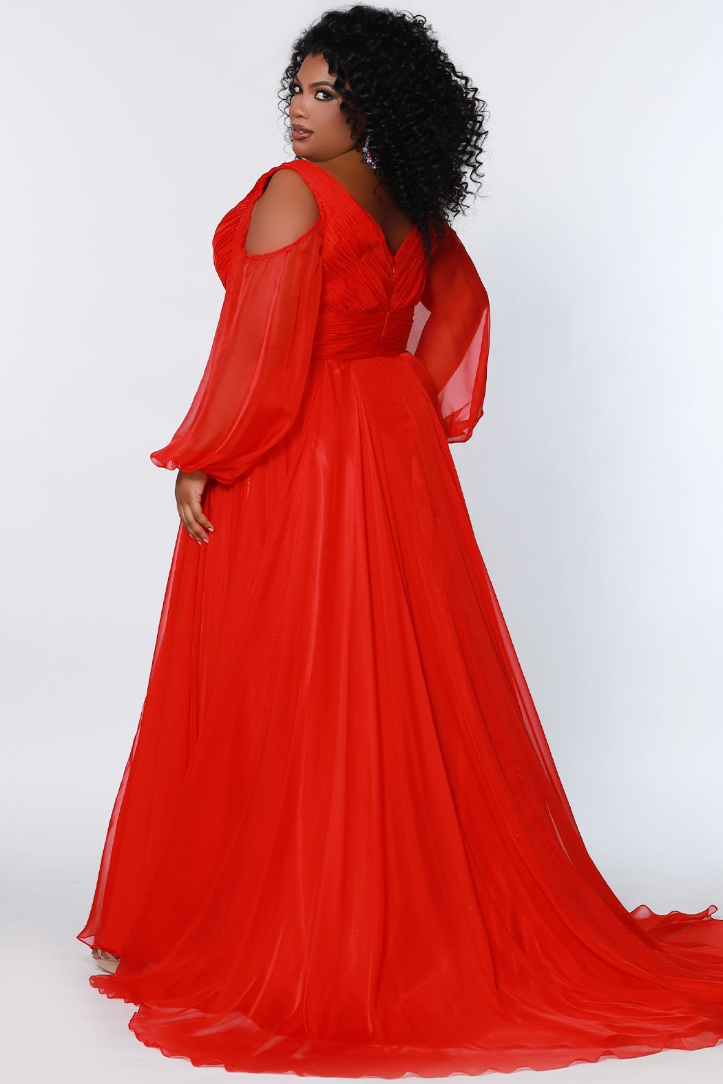 Johnathan Kayne for Sydney's Closet JK2205 A-Line Poly Chiffon Cold Shoulder Long Pouf See-Thru Sleeves Plus Size Prom Dress. Make a fashion statement in the Johnathan Kayne for Sydney's Closet JK2205 prom dress. Crafted from soft poly chiffon, this A-line silhouette features see-thru sleeves and cold shoulders for added drama. With an elegant pouf skirt, this plus size dress ensures superior comfort and absolute confidence.