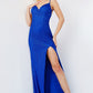 Jovani 08531 Sexy Long Embellished Net Straight Prom Pageant Gown. Experience glamour and sophistication in the Jovani 08531 Blue Sexy Embellished Net Prom Dress. This stunning piece features a form-fitting silhouette, accentuated by a low ruched back bodice with spaghetti straps that flow over and off the shoulders. The V neckline adds a touch of elegance, while the fully lined floor-length skirt flatters every figure. The intricate embellishments on the net fabric give this dress a unique touch, making it stand out from other similar styles.