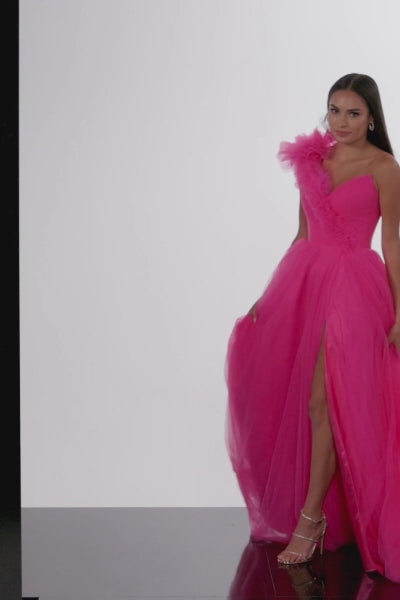 Jovani 25919 Long Prom Dress Ruffle One Shoulder High Slit Ballgown Formal Pageant Gown