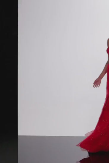 The Jovani 38431 is a captivating and enchanting prom dress, perfect for formal occasions and designed to make you the center of attention. Crafted from delicate tulle, this dress offers an ethereal quality that adds a touch of magic to your look. With its maxi style, it exudes timeless elegance, ensuring you make a lasting impression. One of the standout features of this gown is the embellishment with heat-set stones, which adds a touch of sparkle and opulence to the overall design. The layered skirt includes a high slit, adding an element of allure and ease of movement, making it a practical and fashionable choice.