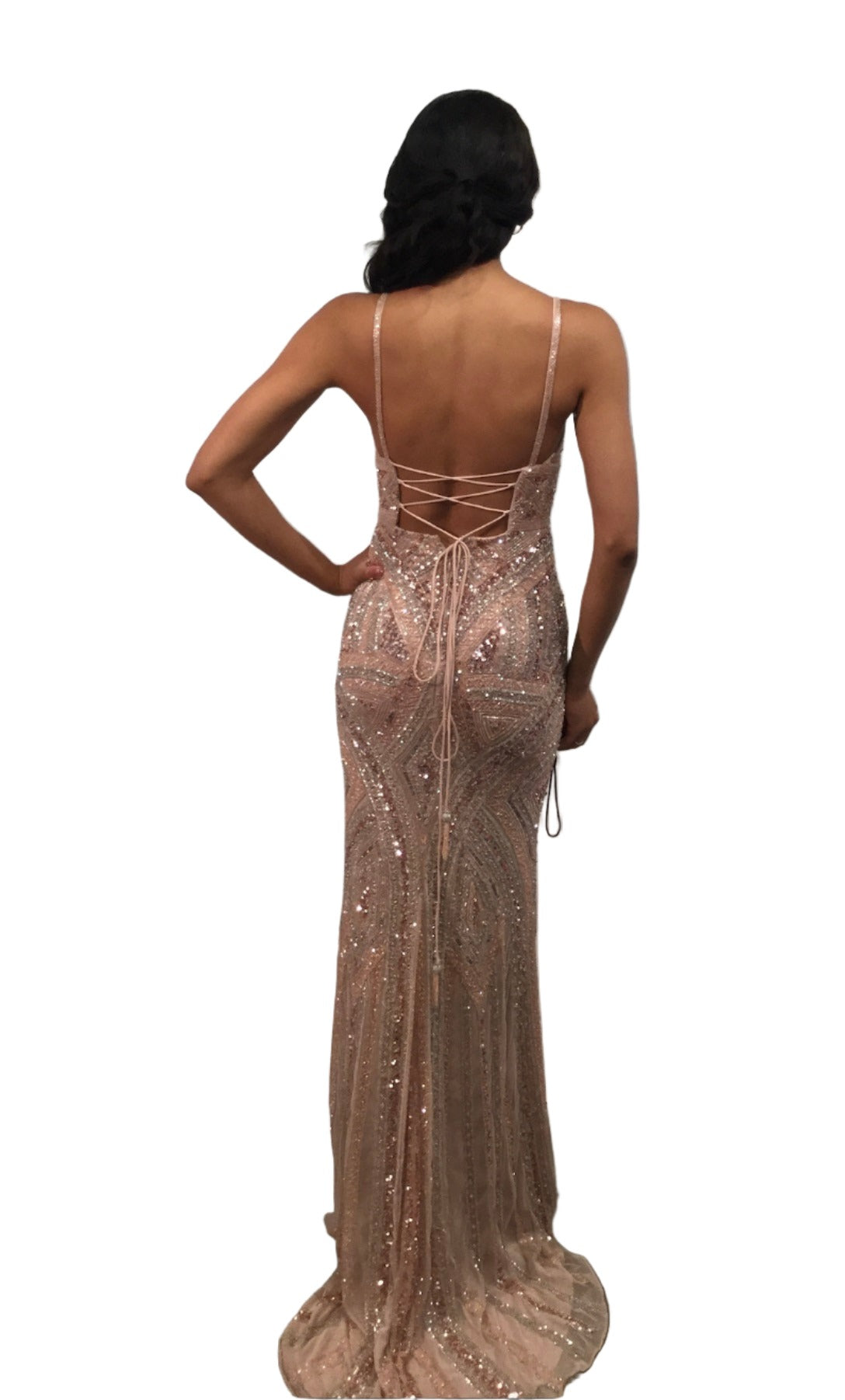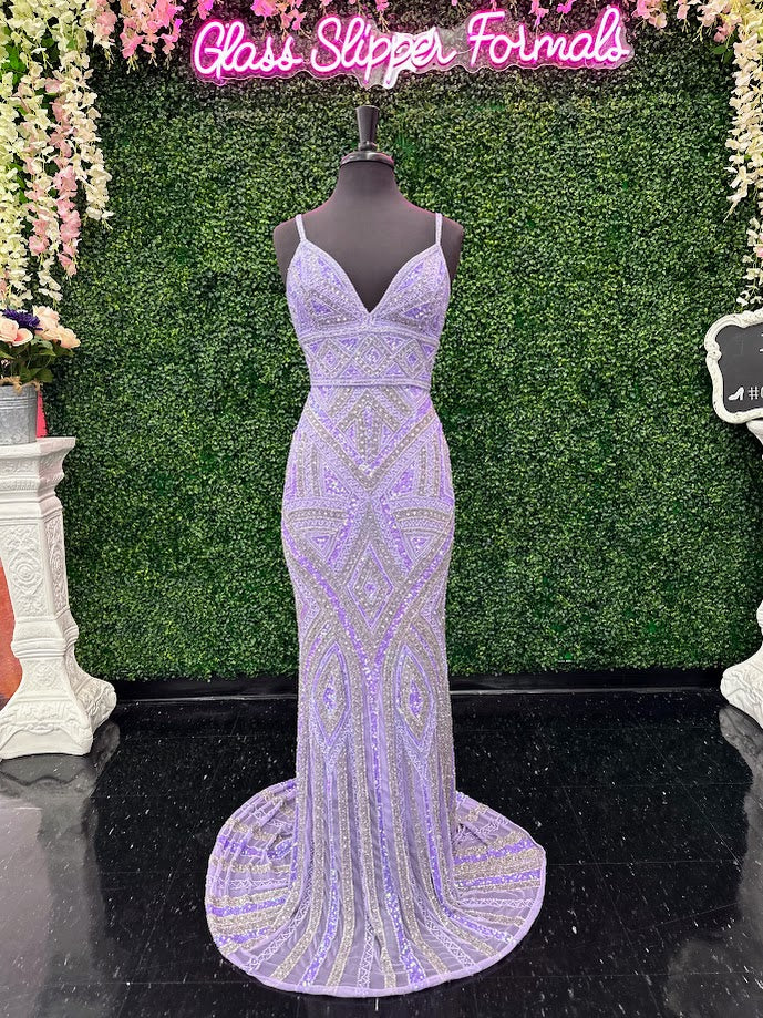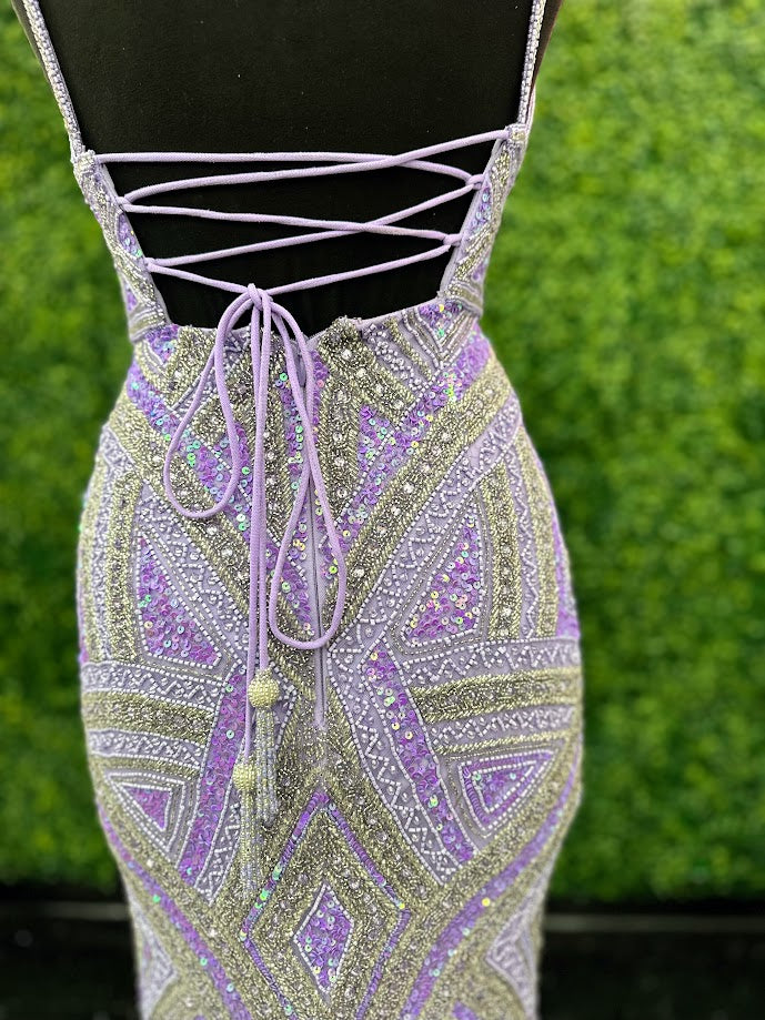 Dazzle in the Jovani 38848 Long Beaded Sequin Prom Dress. The corset bodice and V-neckline give a flattering fit while the Beading & sequins details add a touch of glamour. Fringe beaded corset tassels. Perfect for prom, pageants, or any formal occasion.