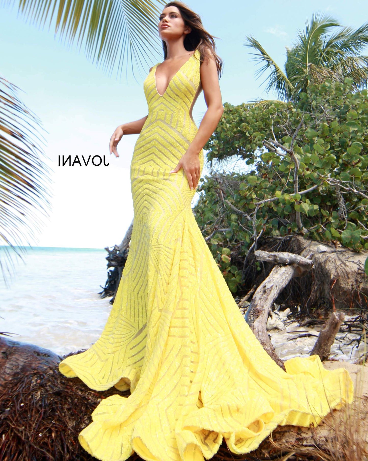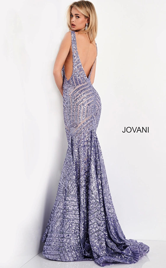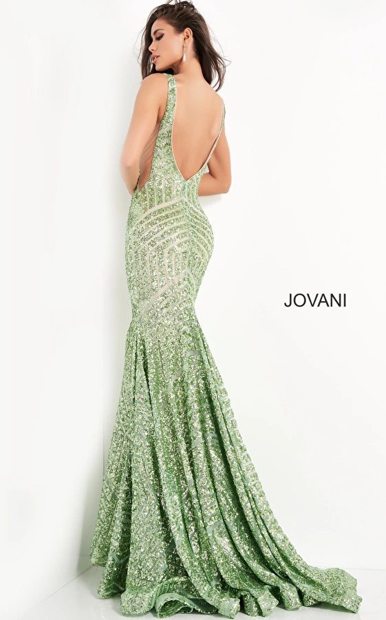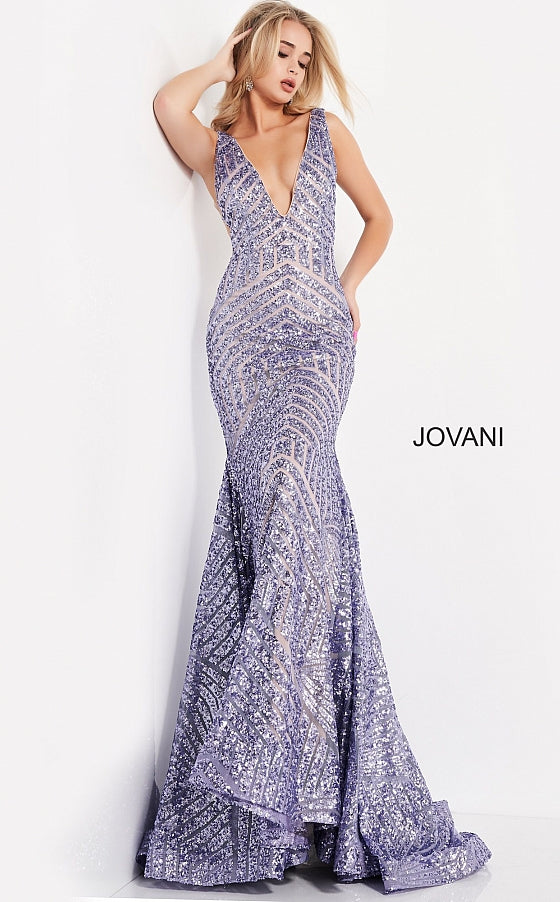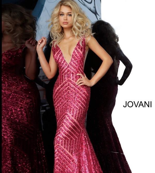 Jovani 59762 Deep V neckline Sequin Embellished mermaid Pageant Prom Dress, Deep V Neckline with sheer mesh side cutout panels. lush trumpet skirt with sweeping train