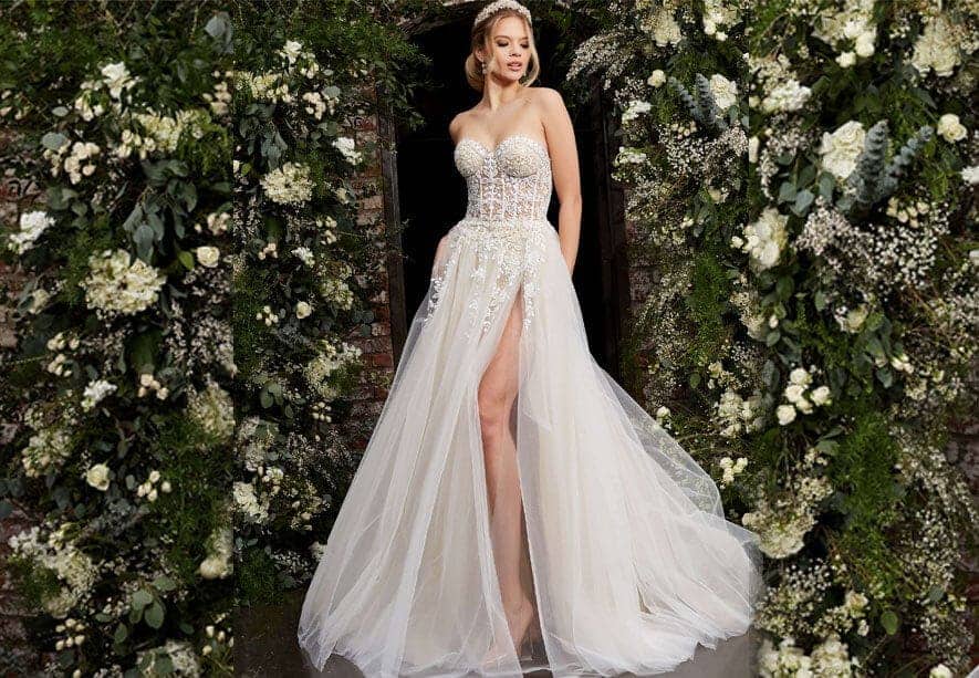 Jovani Bridal 06610 A Line Maxi Slit Sheer Beaded Corset Wedding Dress Ballgown