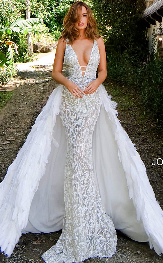 Jovani Couture S62942 Pageant Dress Feather Overskirt Wedding Gown Train