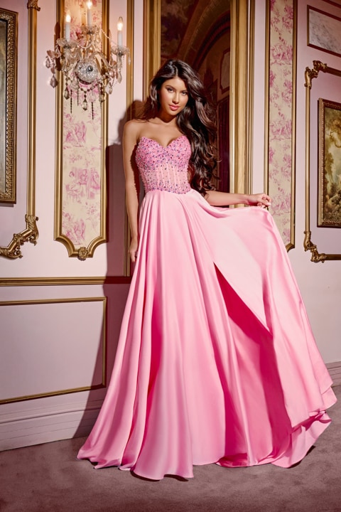 Jovani D6021 Size 00 Pink Crystal Corset Satin A Line Prom Dress V Neck Slit Formal Gown Chiffon