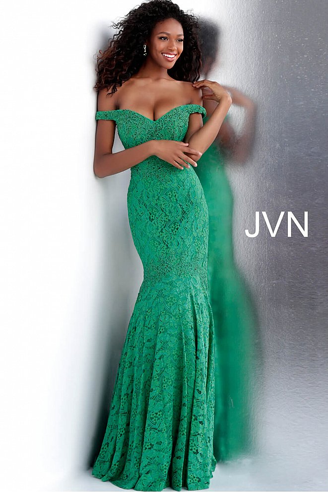 Jovani JVN62564 Ivory Size 0, 2 Lace Off the Shoulder Mermaid Wedding Dress Fit & Flare Bridal